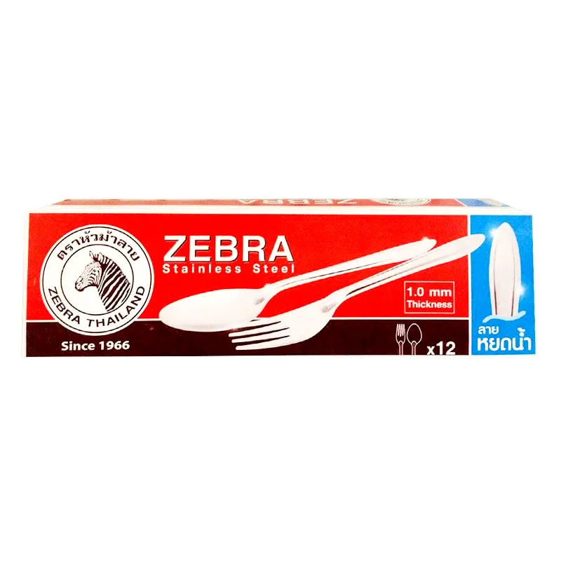 ช้อน-ส้อมลาย &quot;หยดน้ำ&quot; เเบรนด์ หัวม้าลาย (ZEBRA) ผลิตจากสเตนเลสสตีลคุณภาพ SUS 430 ใช้สำหรับรับประทานอาหาร หรือเป็นช้อนกลางตักอาหาร<br />