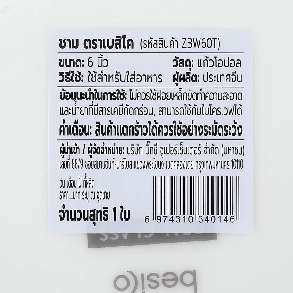<p>เบสิโค ชามโอปอล ขนาด 6 นิ้ว รุ่น ZBW60T สีขาว<br />