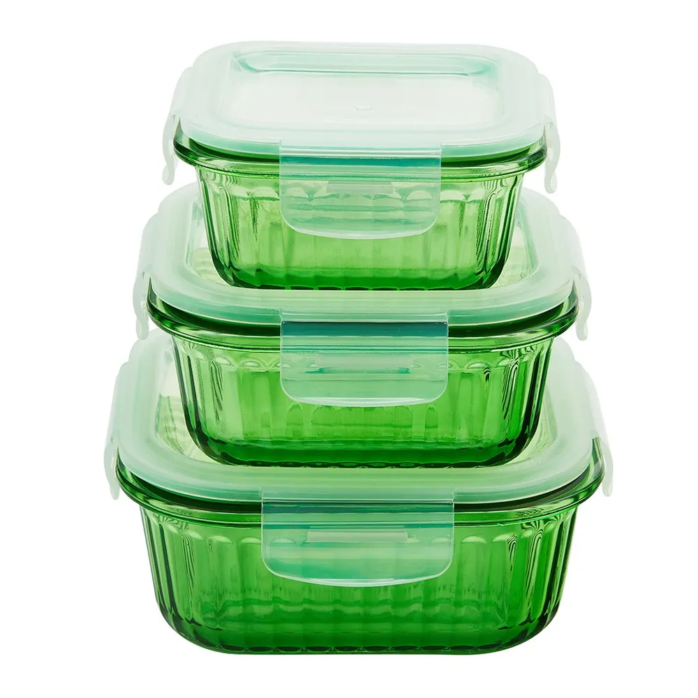 เบสิโค กล่องแก้วถนอมอาหารทรงสี่เหลี่ยม รุ่น 3SC3-3X x 3 ใบ
