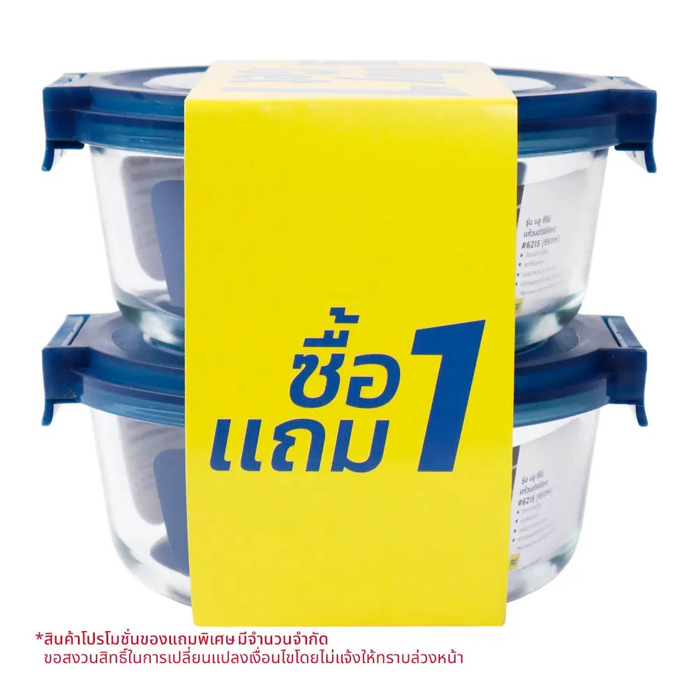 ซุปเปอร์ล็อค กล่องแก้วถนอมอาหาร ทรงกลม ขนาด 950 มล. แพ็ค 2 สีฟ้า