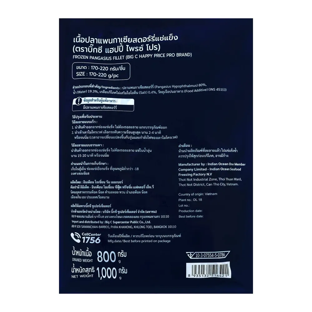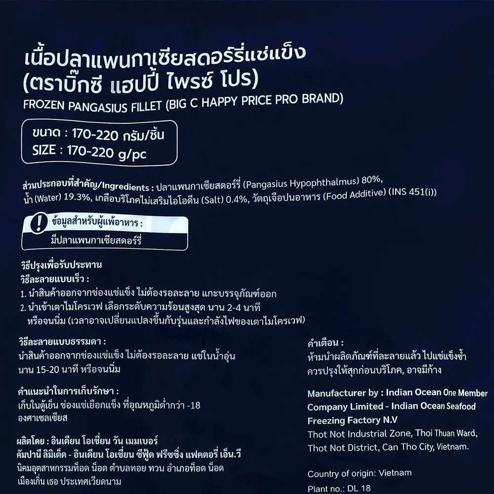 - บิ๊กซี แฮปปี้ ไพรซ์ โปร เนื้อปลาเพนกาเซียสดอร์รี่แช่แข็ง<br />