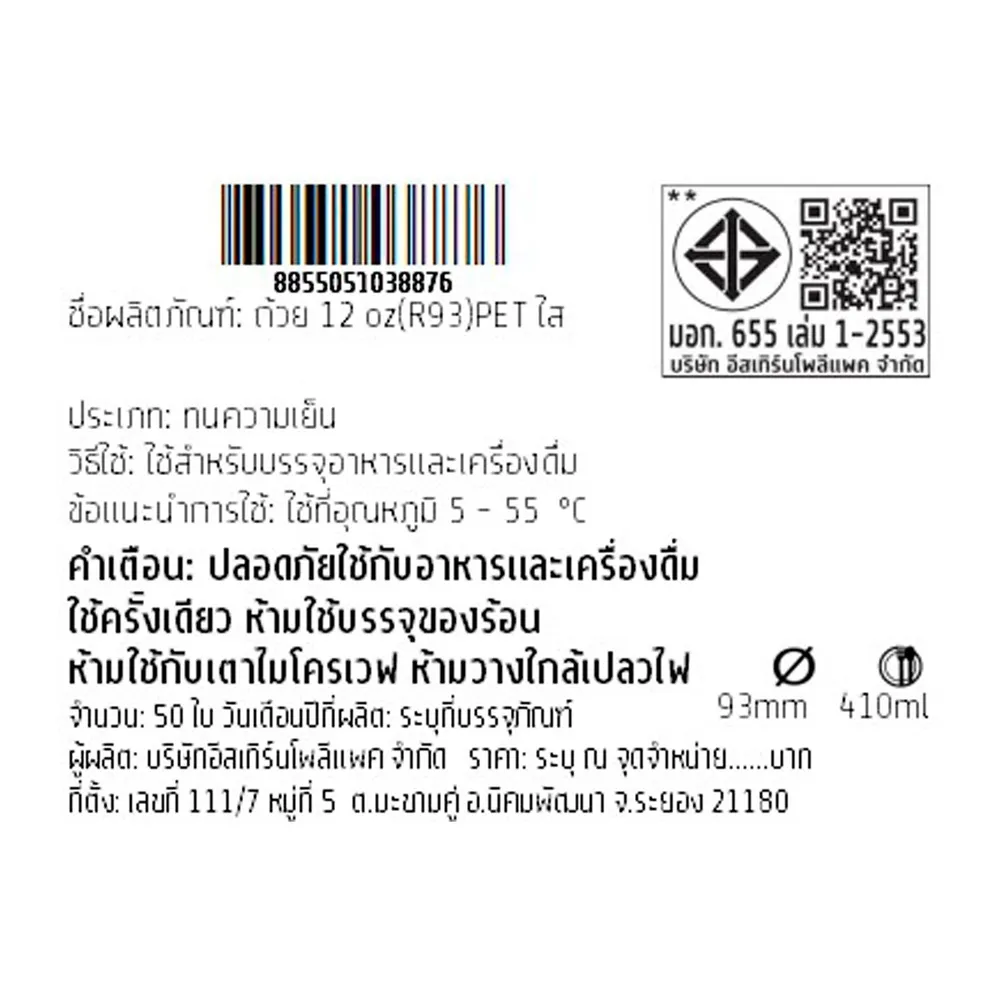 อีพีพี ถ้วย PET รุ่น R93-430 ไม่พิมพ์ลาย ขนาด 12 มล. แพ็ค 50