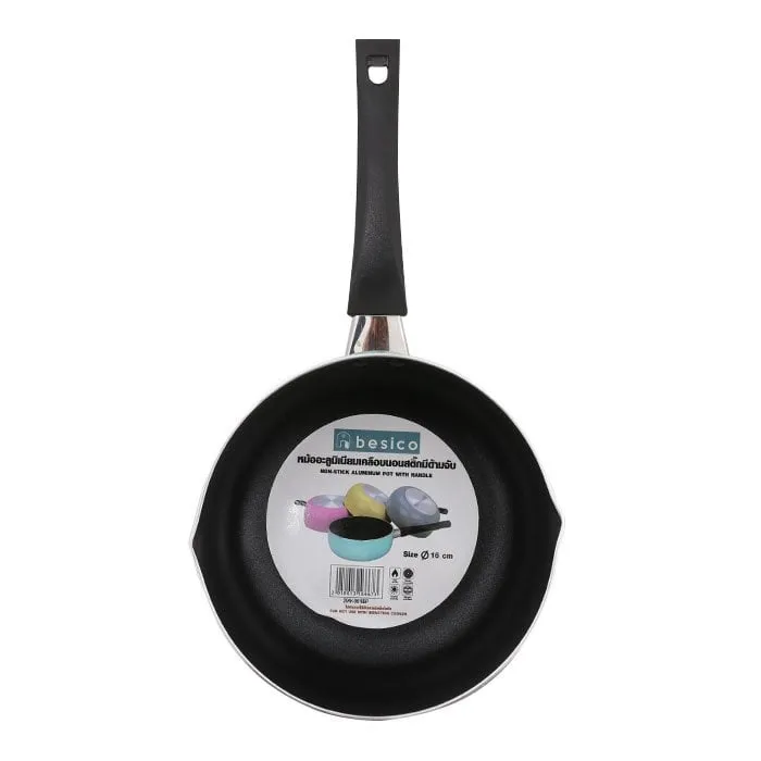 เบสิโค หม้ออะลูมิเนียมเคลือบนอนสติ๊ก มีด้ามจับ ขนาด 16 ซม. คละสี