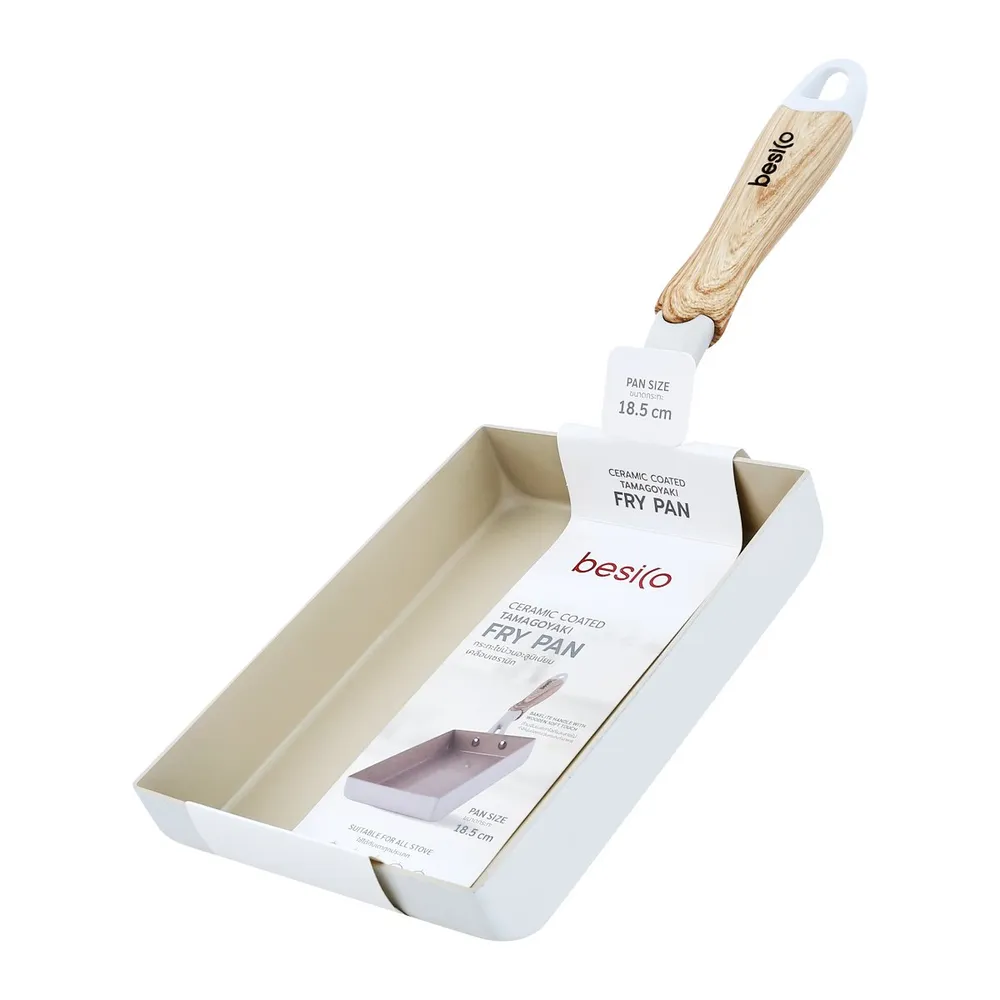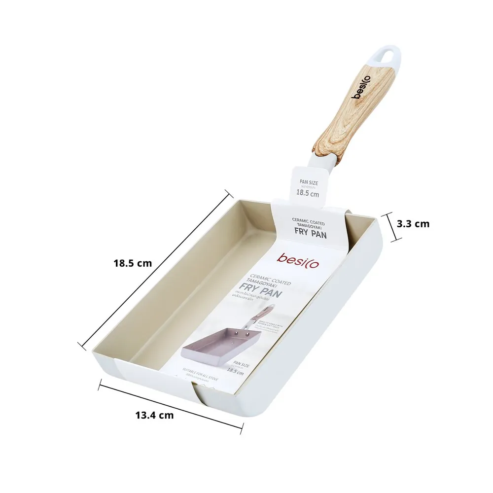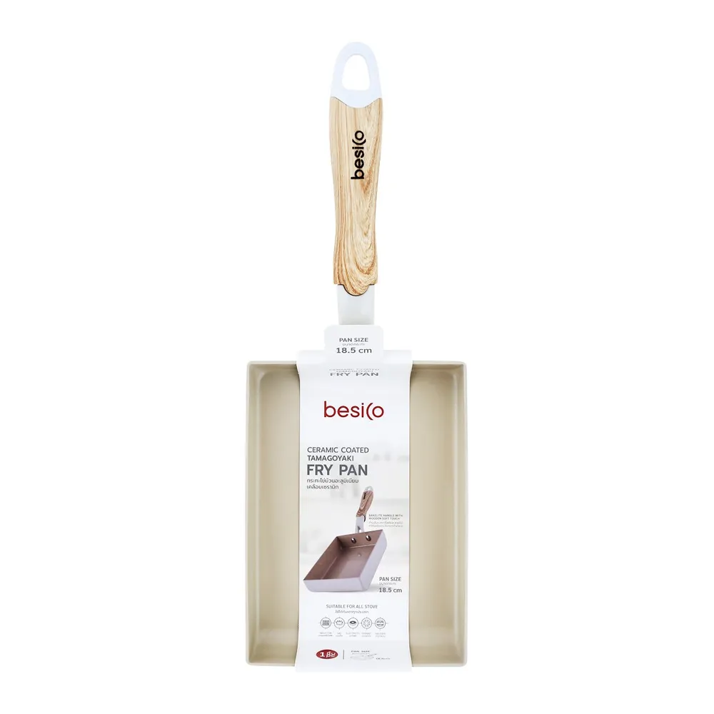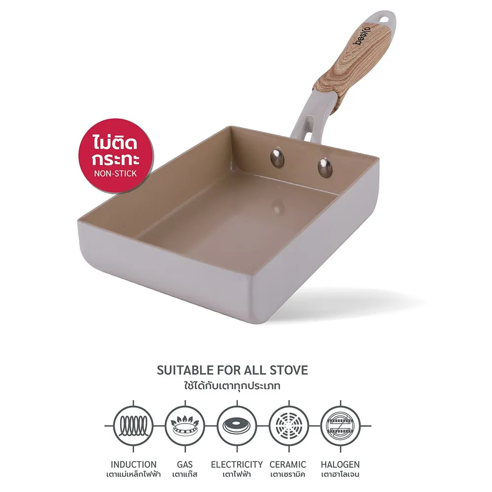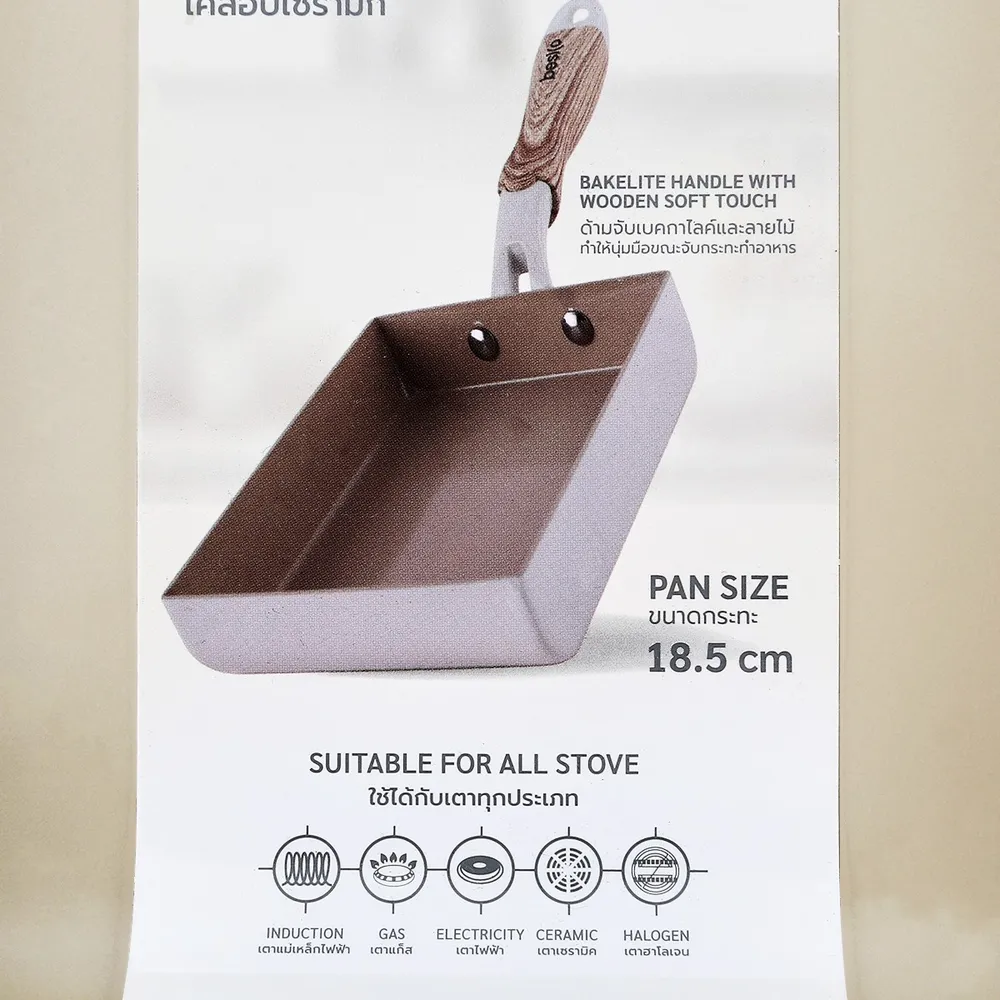 เบสิโค กระทะไข่ม้วนอะลูมิเนียมเคลือบเซรามิก รุ่น T133AK-1813 ขนาดกระทะ 18.5 ซม. สีครีม