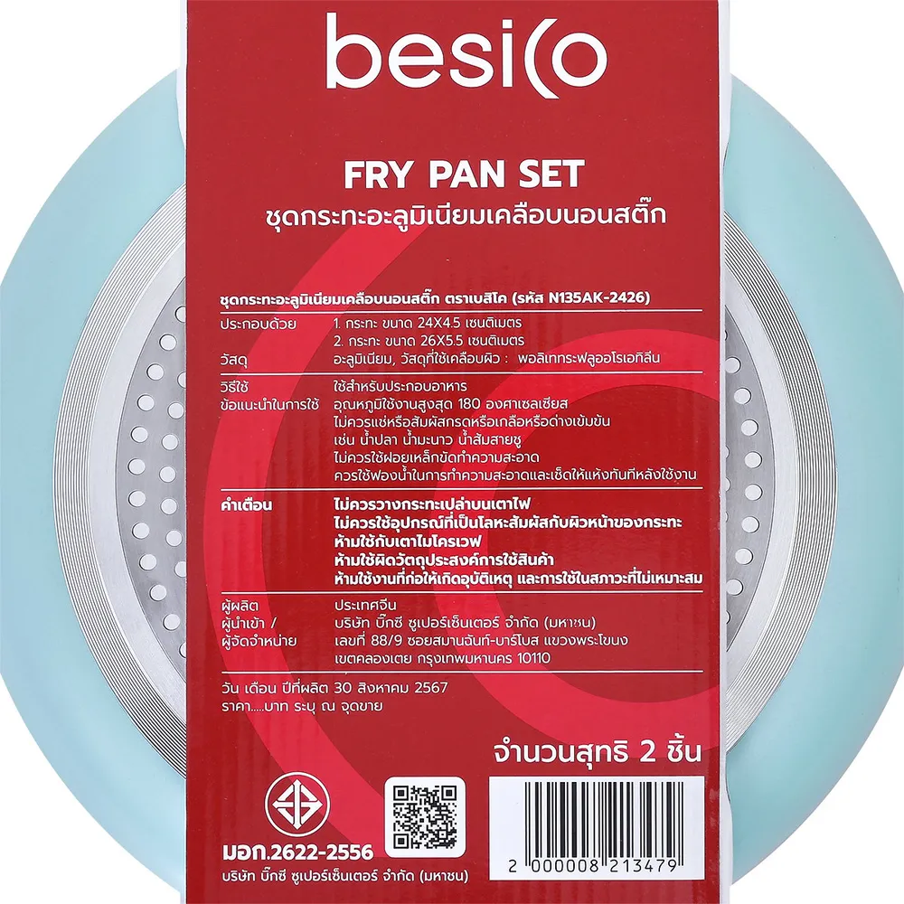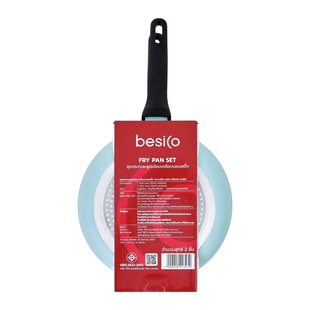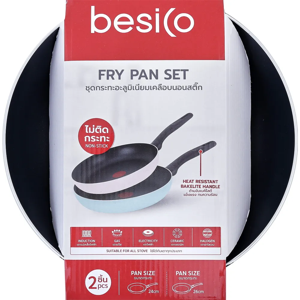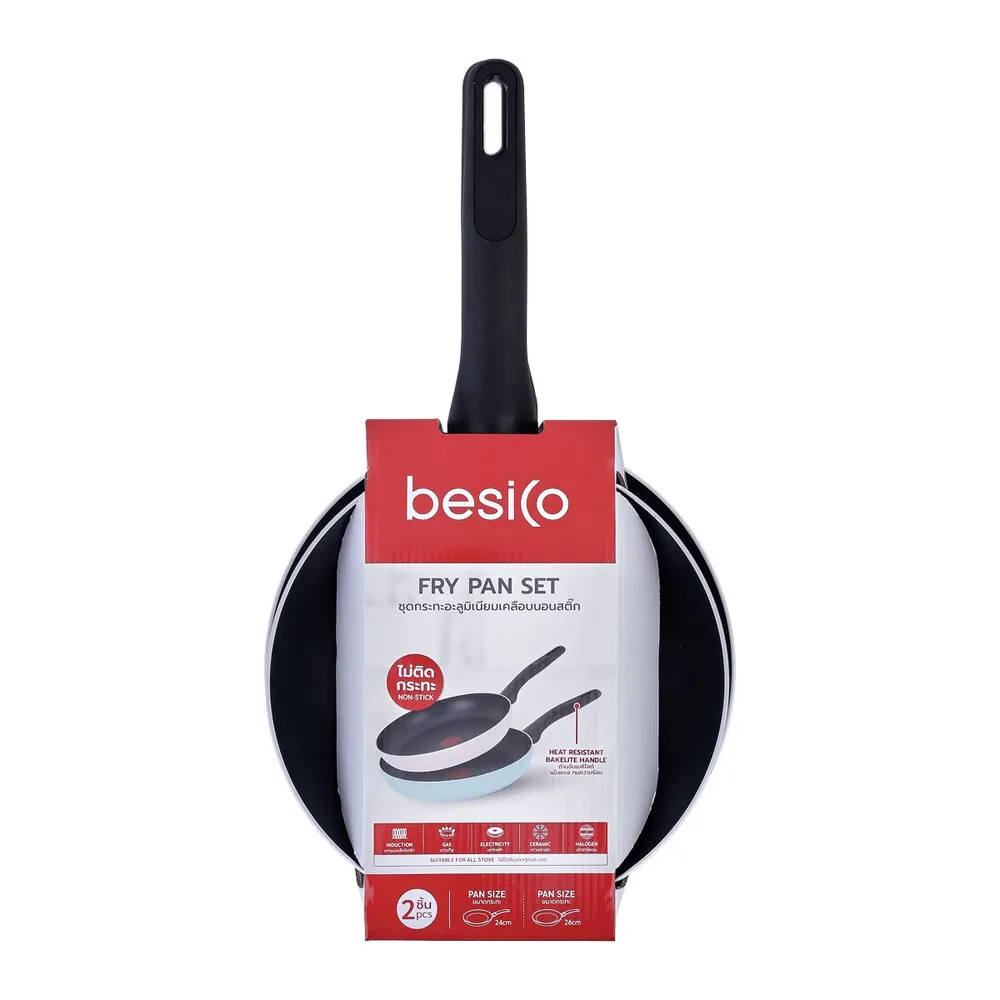 เบสิโค ชุดกระทะอะลูมิเนียมเคลือบนอนสติก รุ่น N135AK-2426 แพ็ค 2 ชิ้น