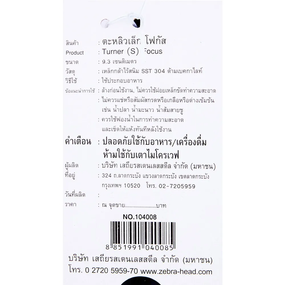<p>ตราหัวม้าลาย ตะหลิวเล็กโฟกัส<br /><br />ประทับตราคุณภาพ ประทับตราหัวม้าลาย ผู้ผลิตเครื่องครัวสเตนเลส คุณภาพมาตรฐาน คู่งานครัวมืออาชีพ ได้พัฒนาปรับปรุงเทคโนโลยีการผลิตต่อเนื่อง เพื่อให้ได้สินค้าที่มีคุณภาพมากที่สุด เพื่อคุณ<br /><br />- ตะหลิว ผลิตจากสเตนเลสคุณภาพมาตรฐาน Food Grade<br />- ใช้สำหรับ&nbsp;ผัด ทอด คลุก อาหารต่างๆ<br />- ด้ามจับยาถนัดมือ<br />-&nbsp;แข็งแรง ทนทาน ใช้งานได้นาน<br /><br /> *ภาพประกอบใช้เพื่อการโฆษณาเท่านั้น</p>