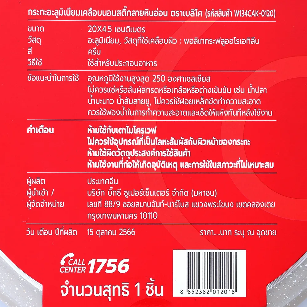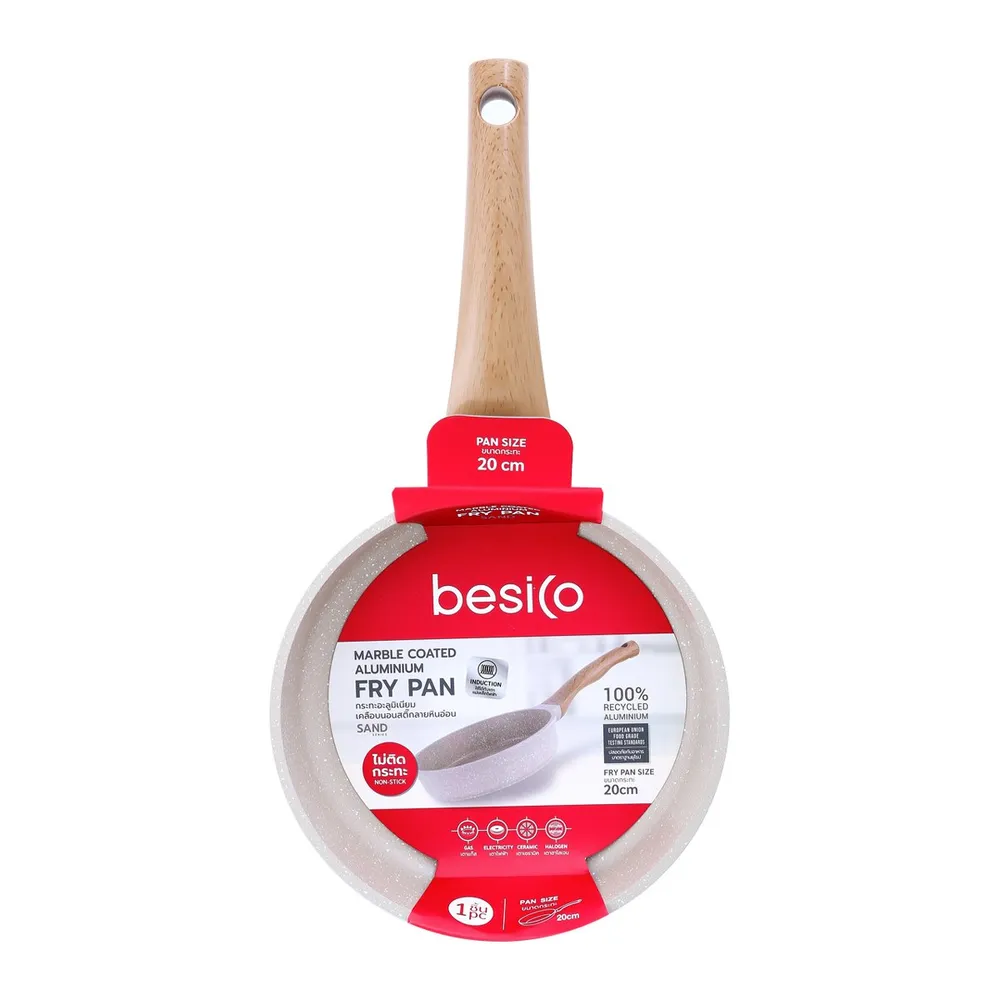 เบสิโค กระทะอะลูมิเนียมเคลือบนอนสติ๊กลายหินอ่อน รุ่น W134CAK-0120 ขนาด 20 นิ้ว สีครีม