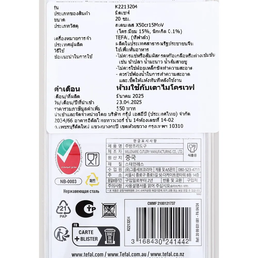 ทีฟาล์ว มีดเชฟ 20 ซม. รุ่น Comfort สีดำ