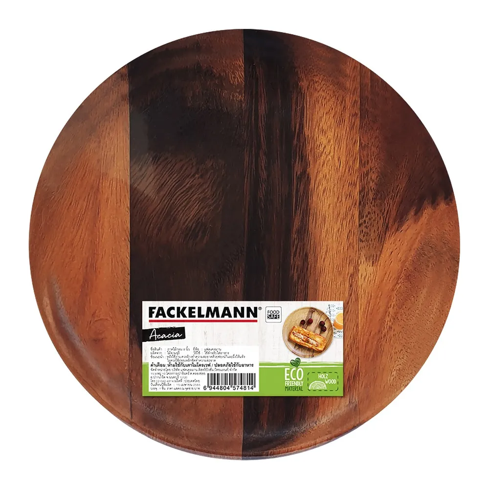 <p>แฟคเคลมาน ถาดไม้ทรงกลม<br /><br />ถาดไม้ทรงกลม "FACKELMANN" พร้อมช่วยคุณรังสรรค์เมนูอาหารได้อย่างมืออาชีพ<br /><br />- ถาดไม้<br />- ถาดไม้ทรงกลม<br />- ถาดไม้ผลิตจากไม้จามจุรีเนื้อดี<br />- ปลอดภัยใช้กับอาหาร<br />- ทัพพีผลิตจากไม้จามจุรีเนื้อดี<br />- ถาดไม้มักนิยมใช้เป็นภาชนะรองชาม หรือใส่เมนูขนมหวานจำพวกเค้ก เบเกอรี่ ขนมปัง เป็นต้น<br /><br />*สีของสินค้าอาจมีความแตกต่าง ขึ้นอยู่กับการตั้งค่าของแต่ละหน้าจอ และภาพประกอบใช้เพื่อการโฆษณาเท่า</p>