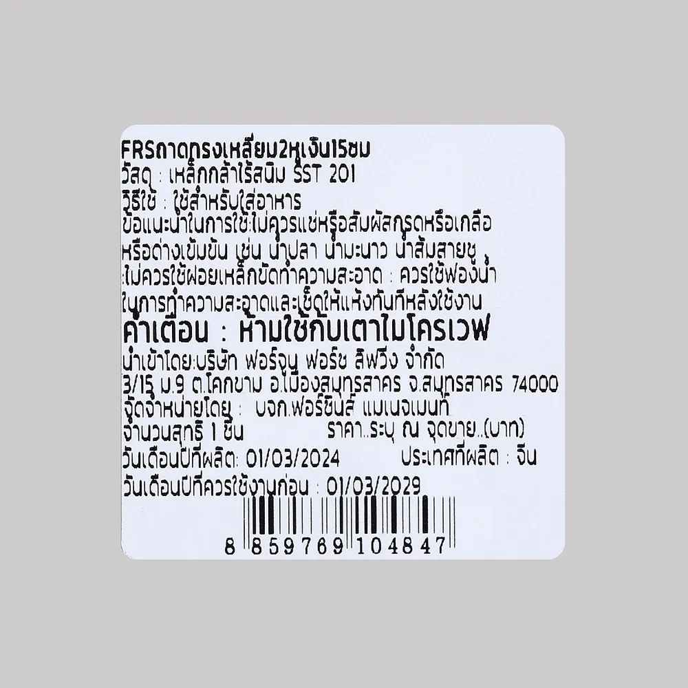 <p>ฟอร์ซินส์ ถาดทรงเหลี่ยม 2 หู สีเงิน ขนาด 15 ซม.<br />