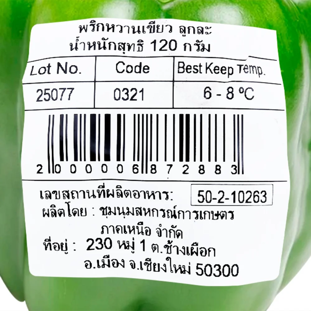 - วี อาร์ เฟร็ช พริกหวานสีเขียว สดจากแหล่งเพาะปลูกภาคเหนือ<br />