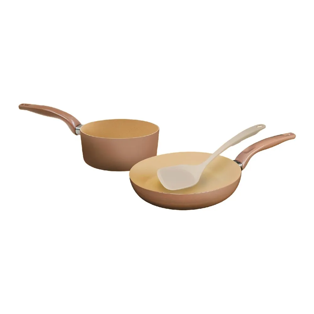 - ภายในชุดประกอบด้วย กระทะ 24 ซม. จำนวน 1 ใบ, กระทะ 16 ซม. จำนวน 1 ใบ, ตะหลิว 30 ซม. จำนวน 1 ชิ้น<br />