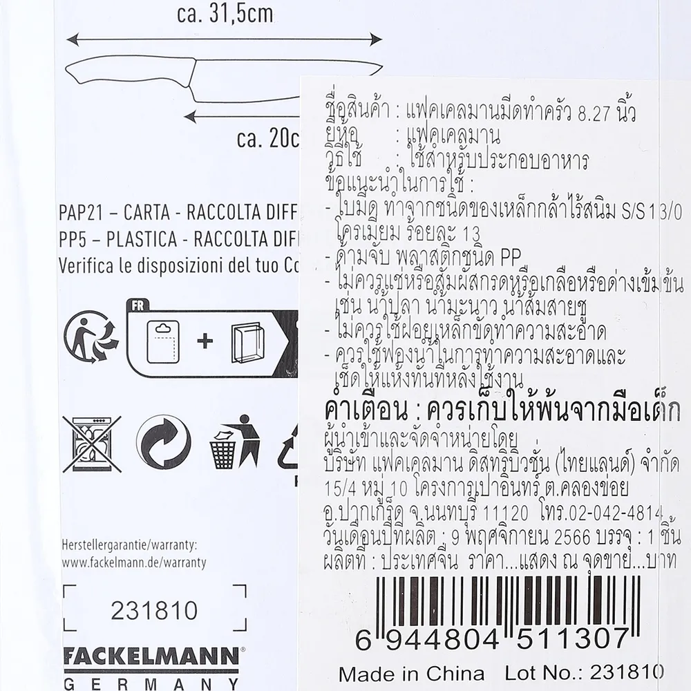 - แฟคเคลมาน มีดทำครัว ขนาด 8.27 นิ้ว<br />