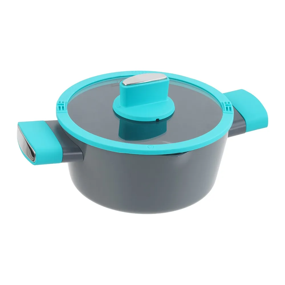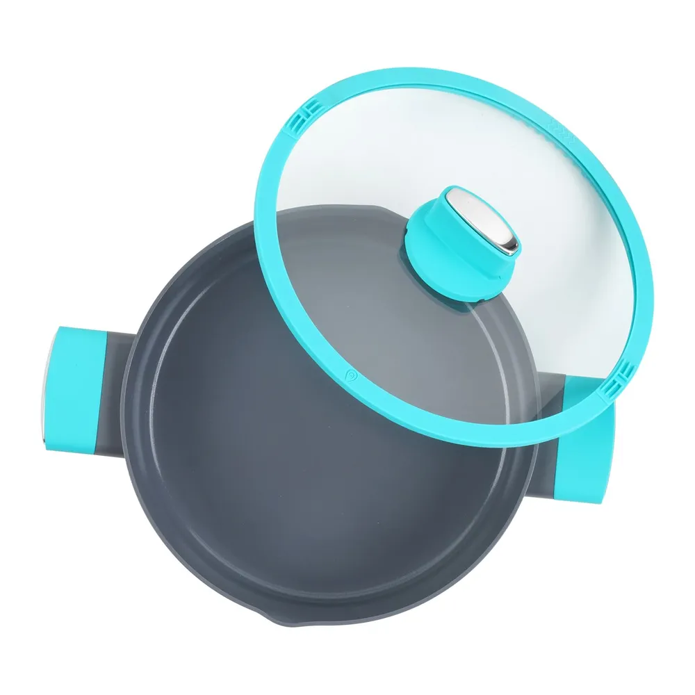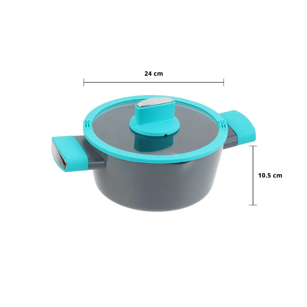 - วัสดุ: Aluminum 75%, Bakelite Handle 10%, Glass Lid 10%, Silicone Ring 5%<br />