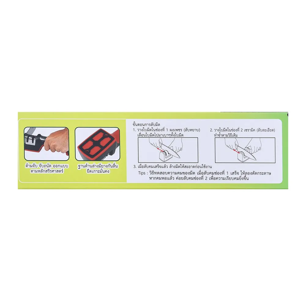 - คมเหมือนใหม่ ง่ายเพียง 2 ขั้นตอน 1. ช่องลับผงเพชร (ลับหยาบ) เพื่อเพิ่มความคมใบมีด / 2. ช่องลับเซรามิค (ลับละเอียด) เพื่อความเรียบคมของใบมีด<br />