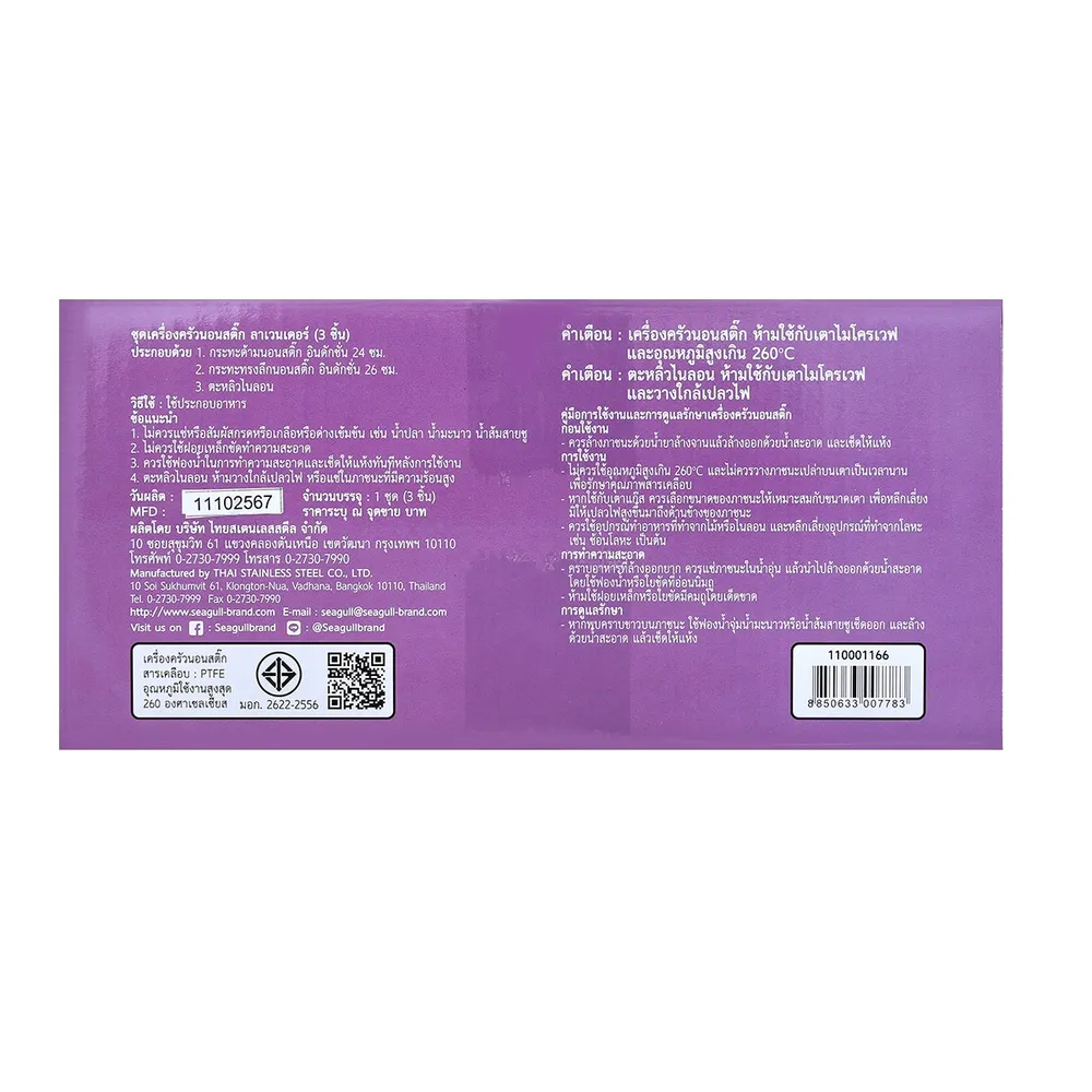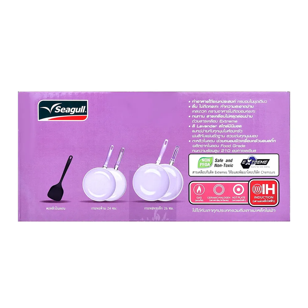 นกนางนวล ชุดเครื่องครัวนอนสติก (3 ชิ้น) สีลาเวนเดอร์