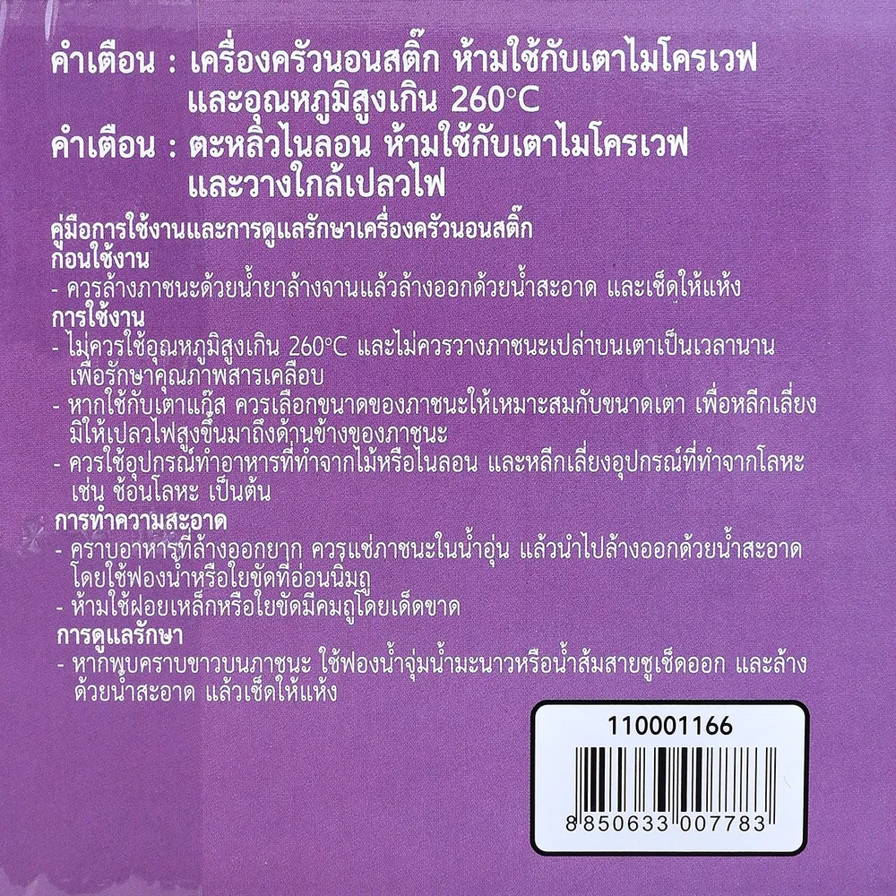 5. เครื่องครัวนอนสติก ห้ามใช้กับเตาไมโครเวฟ และอุณหภูมิสูงเกิน 260&deg;C<br />