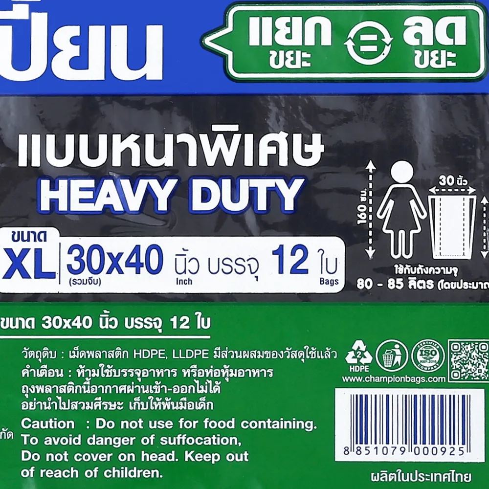 - แชมเปี้ยน ถุงขยะ ขนาด XL<br />