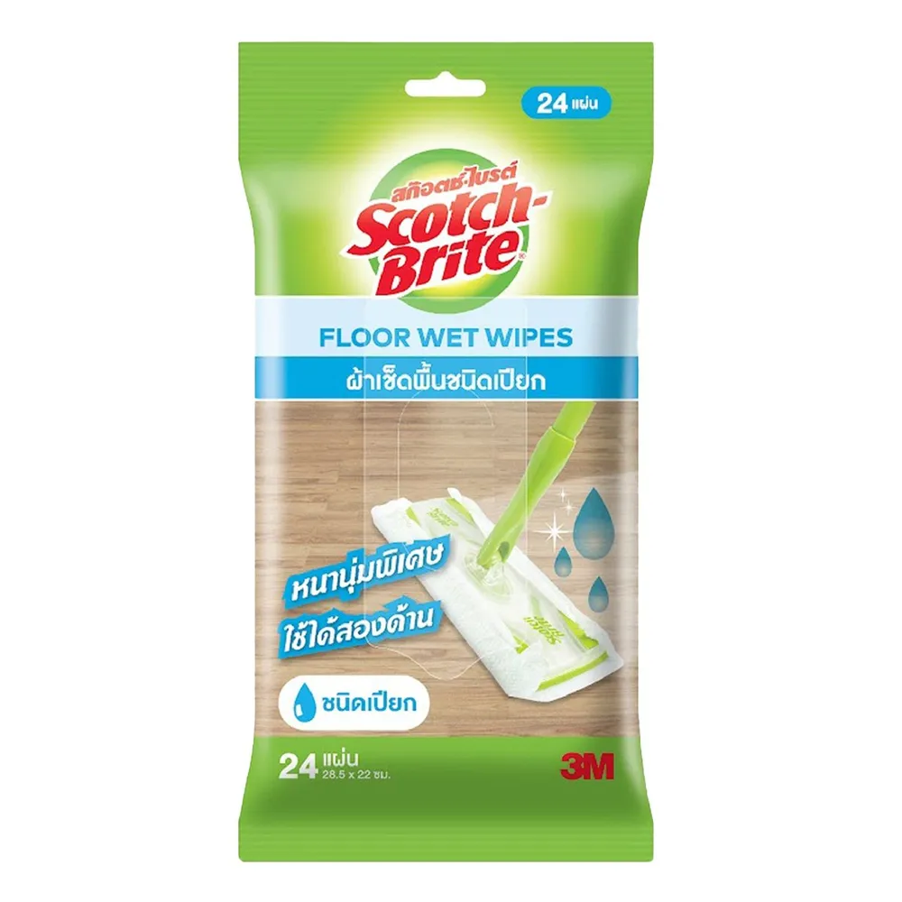 สก๊อตช์-ไบรต์ ผ้าเช็ดพื้นชนิดเปียก บรรจุ 24 แผ่น