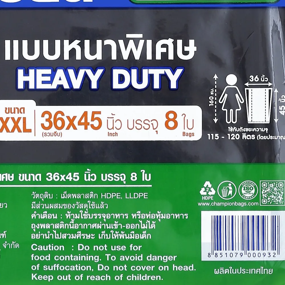 - แชมเปี้ยน ถุงขยะ ขนาด XXL<br />