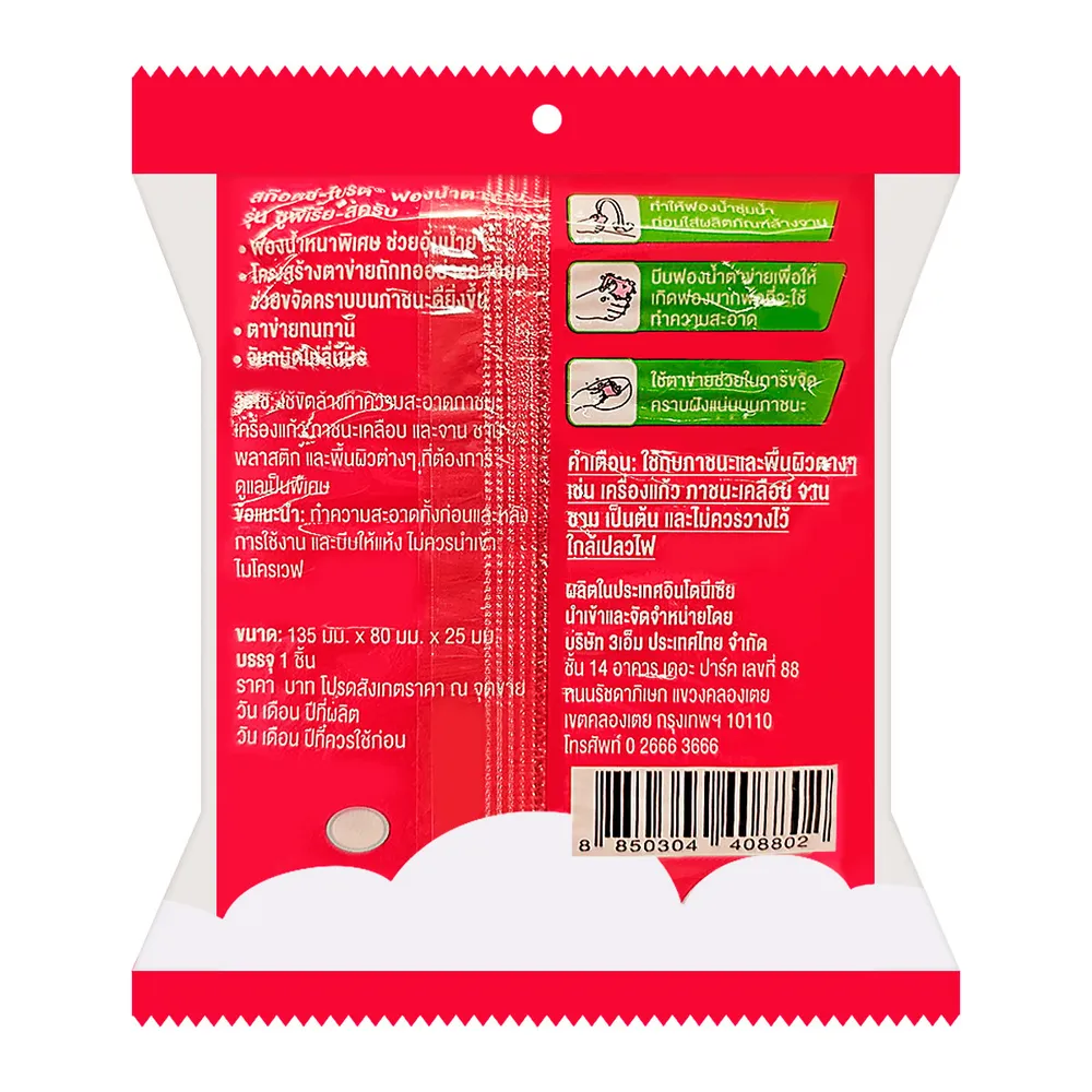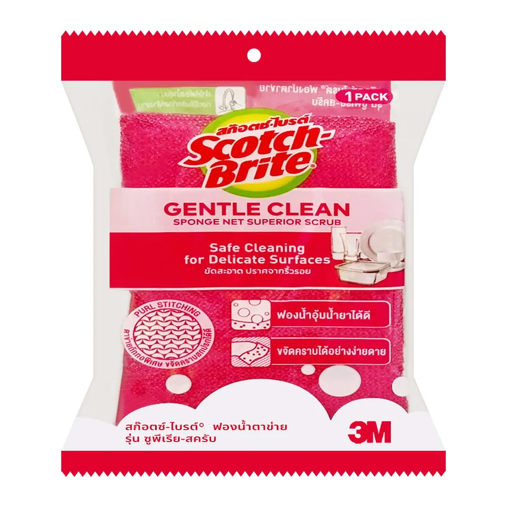 3เอ็ม สก๊อตช์-ไบรต์ ฟองน้ำตาข่าย ซูพีเรีย สครับ ฟองน้ำหนาพิเศษ ช่วยอุ้มน้ำยา โครงสร้างตาข่ายถักทออย่างละเอียด ช่วยขจัดคราบภาชนะดียิ่งขึ้น<br />