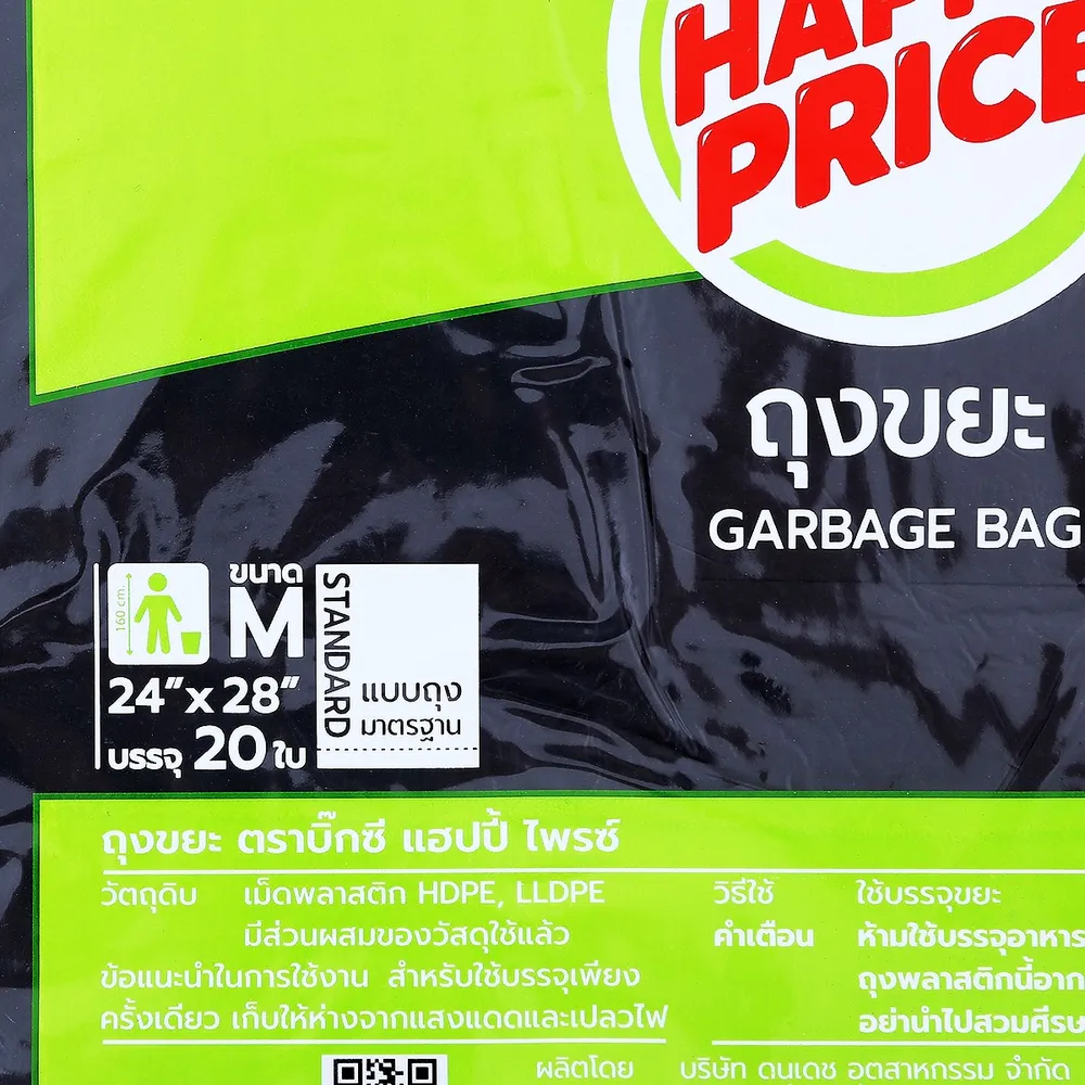 บิ๊กซี แฮปปี้ ไพรซ์ ถุงขยะ ขนาด 24 x 28 นิ้ว สีดำ แพ็ค 20 ใบ