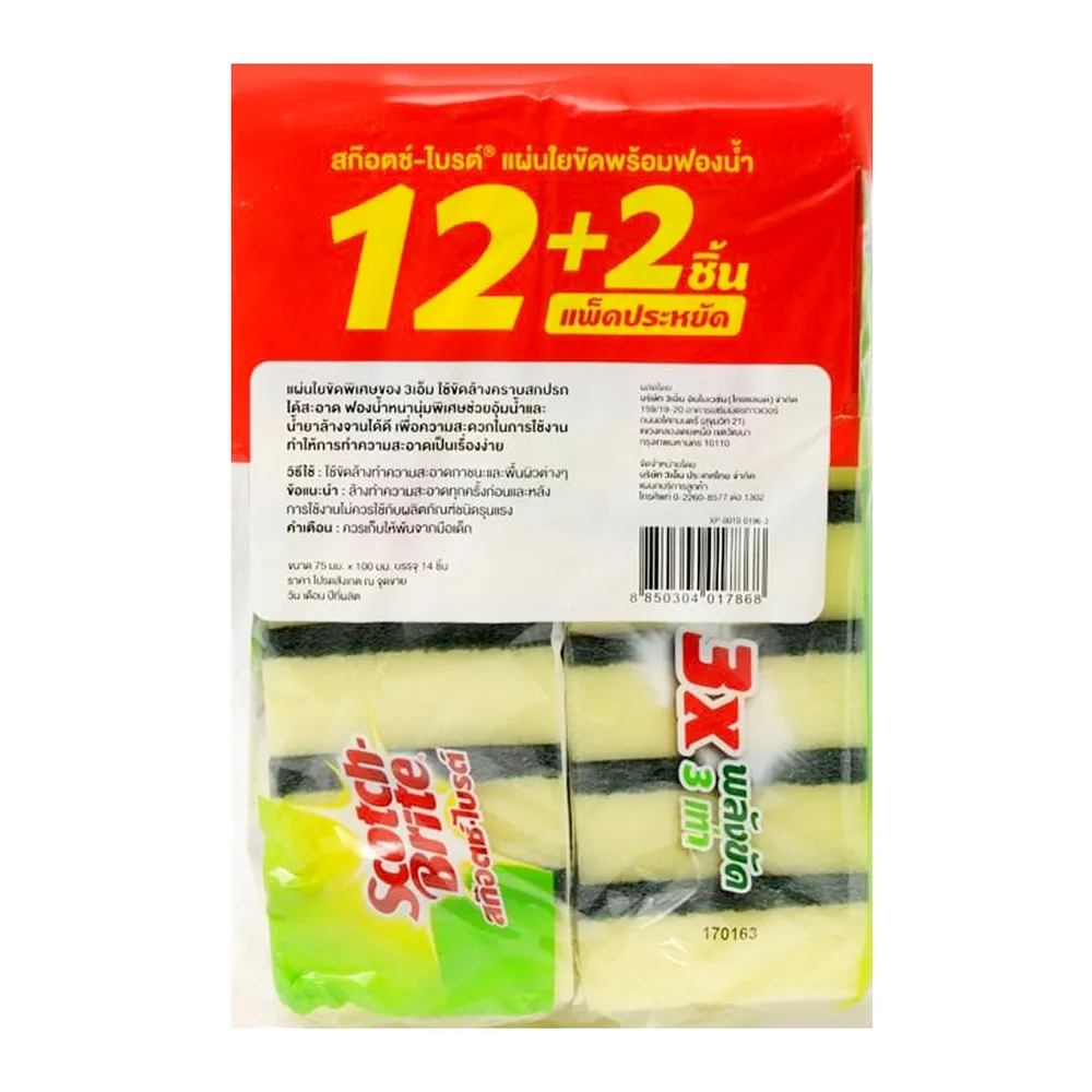 สก๊อตช์-ไบรต์ แผ่นใยขัดพร้อมฟองน้ำ แพ็ค 12+2