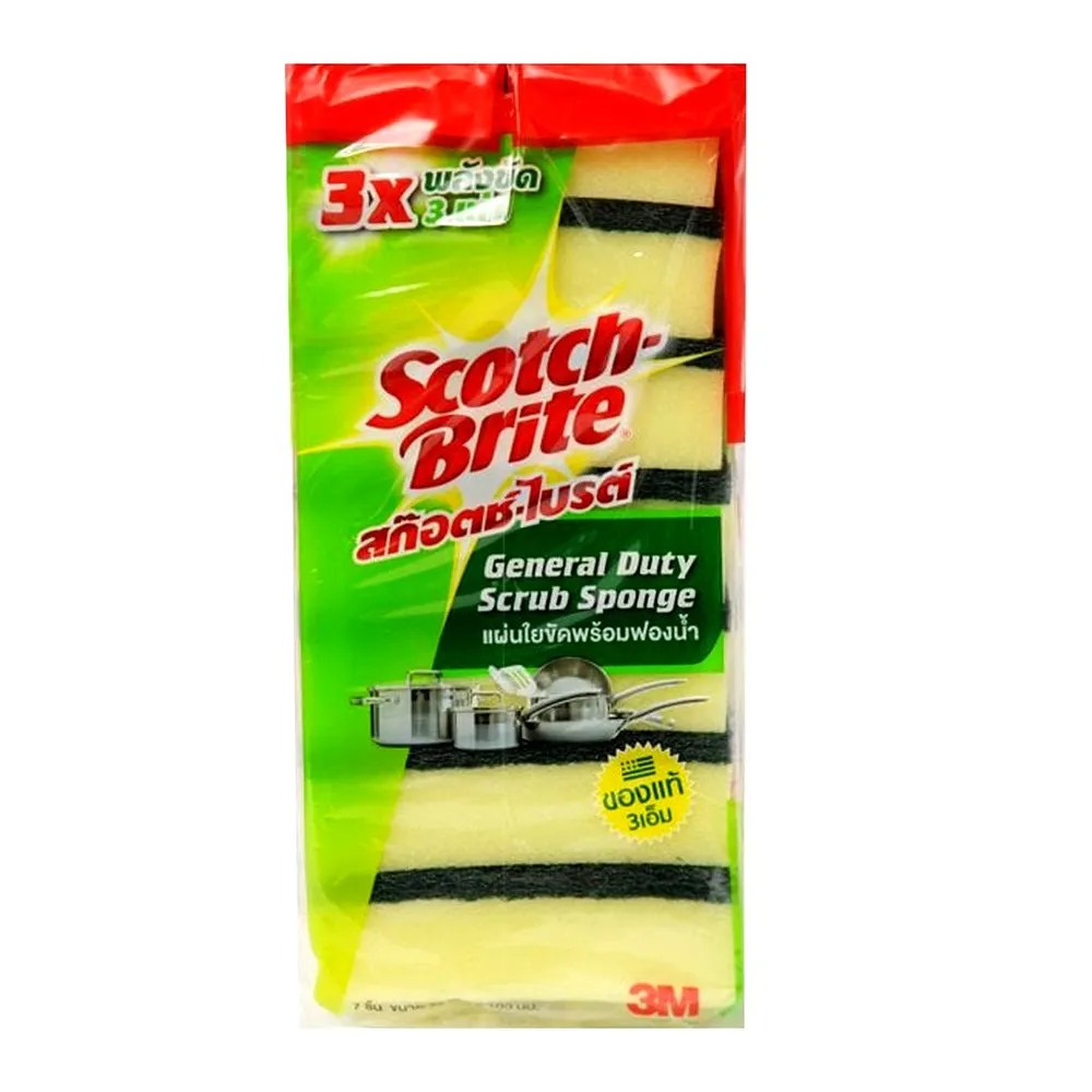 สก๊อตช์-ไบรต์ แผ่นใยขัดพร้อมฟองน้ำ ซึ่งมี 2 ด้านที่แตกต่างในชิ้นเดียว โดยฝั่งด้านแผ่นใยเหมาะสำหรับใช้ขัดคราบสกปรกฝังแน่น ส่วนด้านฟองน้ำหนานุ่มเหมาะสำหรับใช้ขจัดคราบสกปรกทั่วๆ ไป ช่วยขัดล้างคราบสกปรกให้สะอาดหมดจด ประหยัดแรง ใช้งานได้อย่างคุ้มค่า<br />