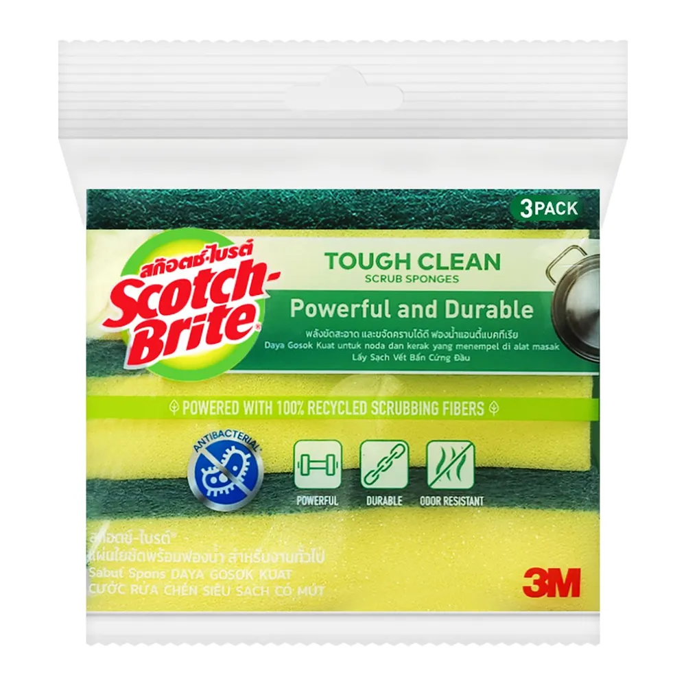 3เอ็ม สก๊อตช์-ไบรต์ แผ่นใยพร้อมฟองน้ำ สูตรแอนตี้แบคทีเรีย สีเขียว แพ็ค 3
