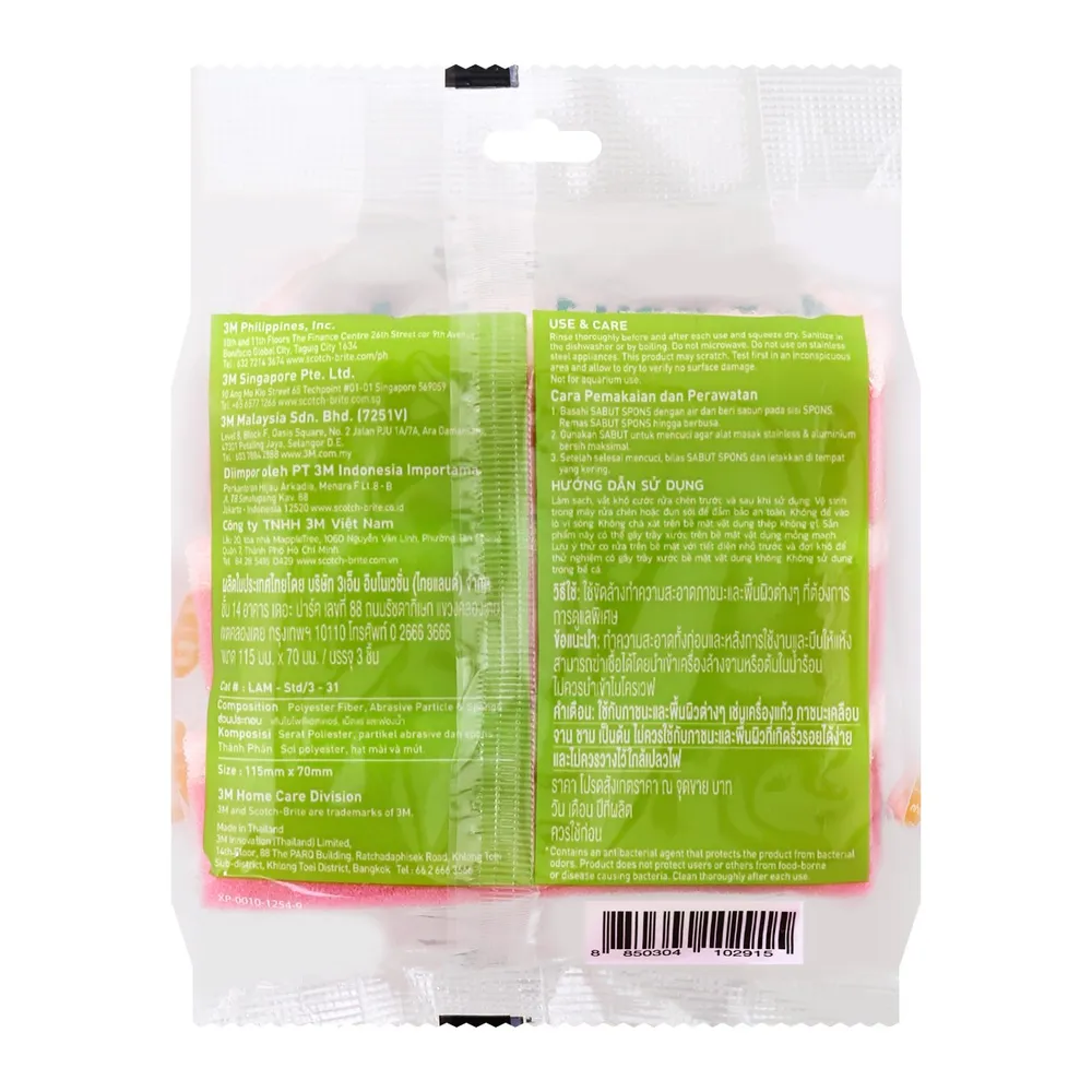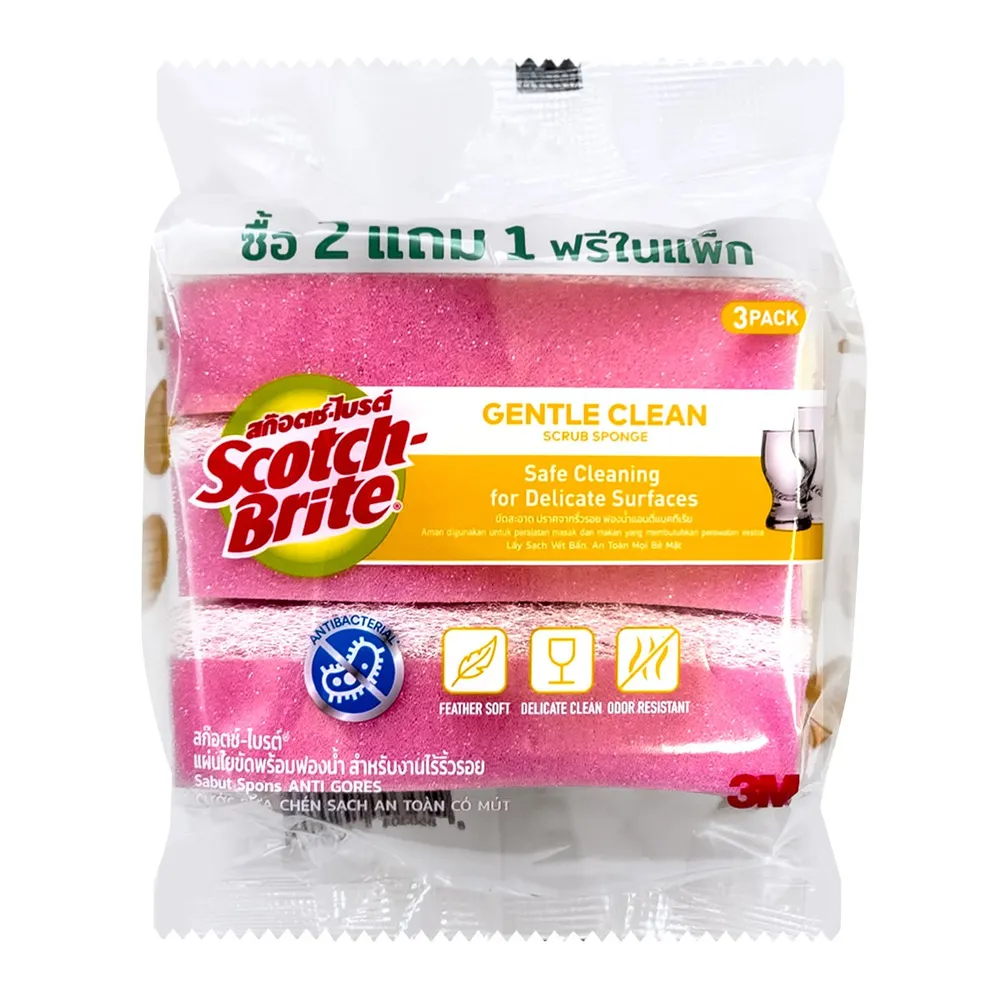 3เอ็ม สก๊อตช์-ไบรต์ แผ่นใยพร้อมฟองน้ำ สูตรแอนตี้แบคทีเรีย สีชมพู แพ็ค 2 แถม 1 (ฟรีในแพ็ค)