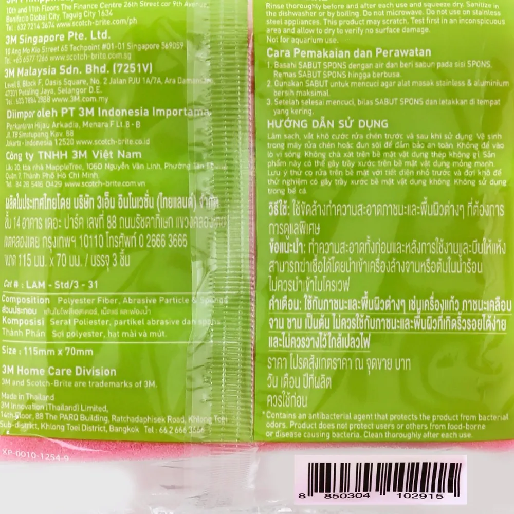 -&nbsp;สก๊อตช์-ไบรต์ 3เอ็ม แผ่นใยพร้อมฟองน้ำ สูตรแอนตี้แบคทีเรีย&nbsp;<br />