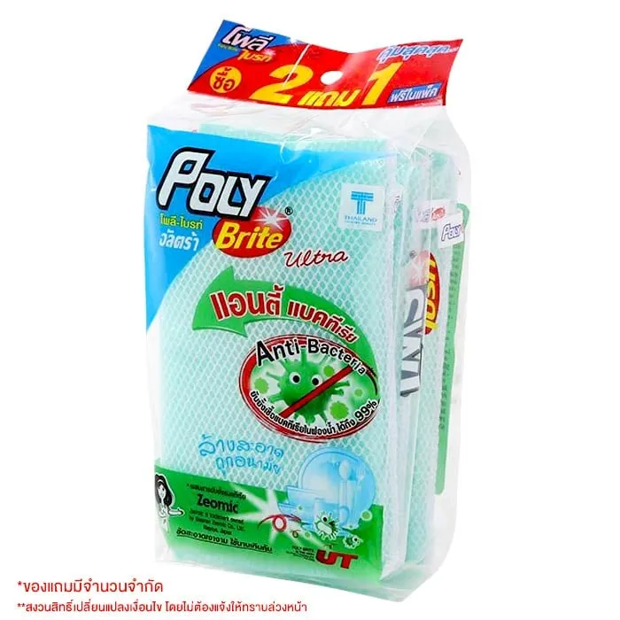 โพลี-ไบรท์ อัลตร้า ฟองน้ำตาข่ายแอนตี้แบคทีเรีย แพ็ค 2+1 ชิ้น (ฟรีในแพ็ค)