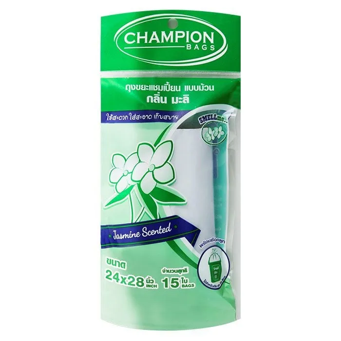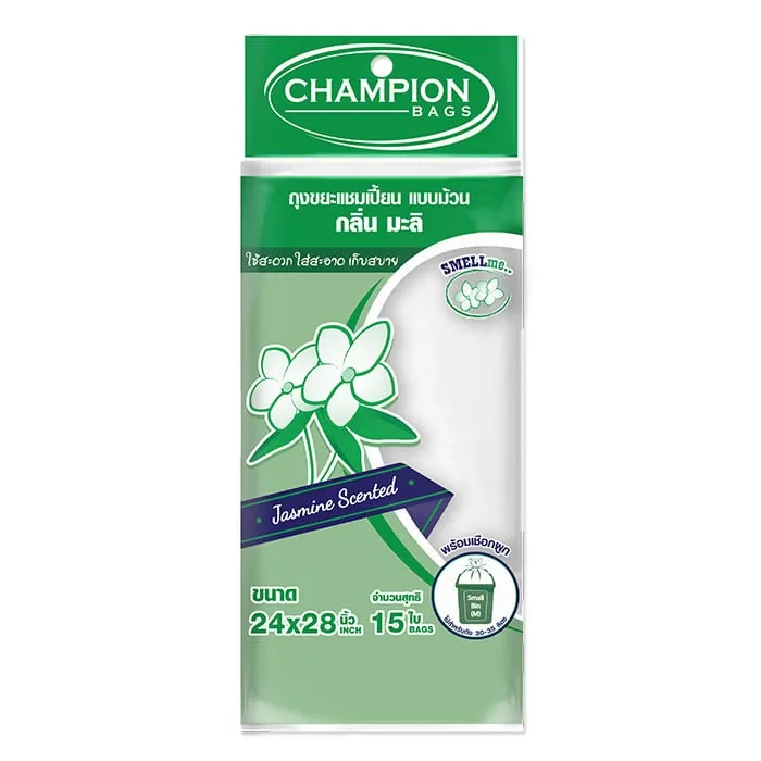 แชมเปี้ยน ถุงขยะ แบบม้วน กลิ่นมะลิ ขนาด 24 x 28 นิ้ว 15 ใบ