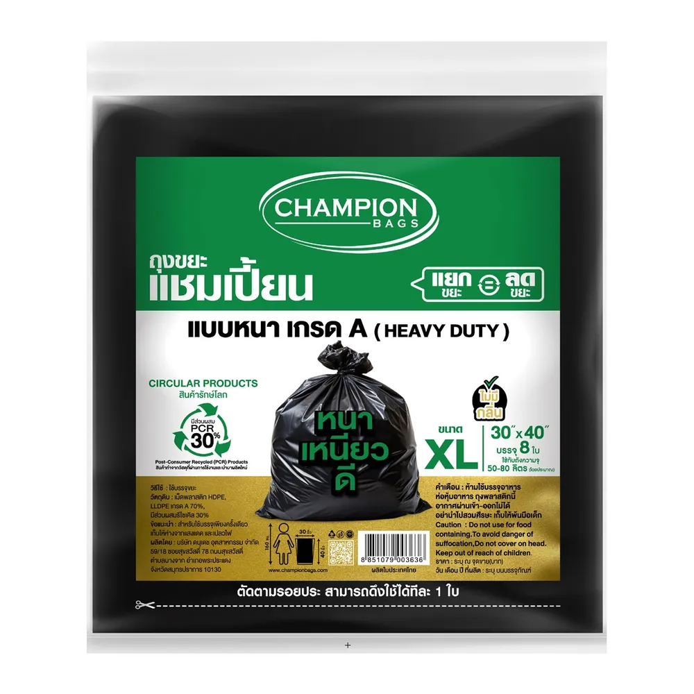 แชมเปี้ยน ถุงขยะสีดำ แบบหนา เกรด A ขนาด 30x40 นิ้ว แพ็ค 8 ใบ