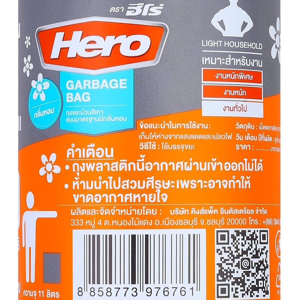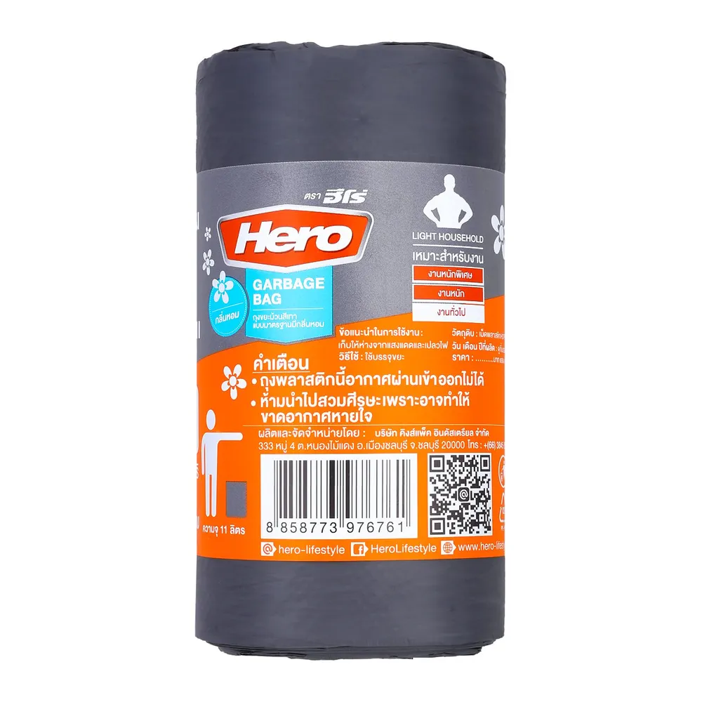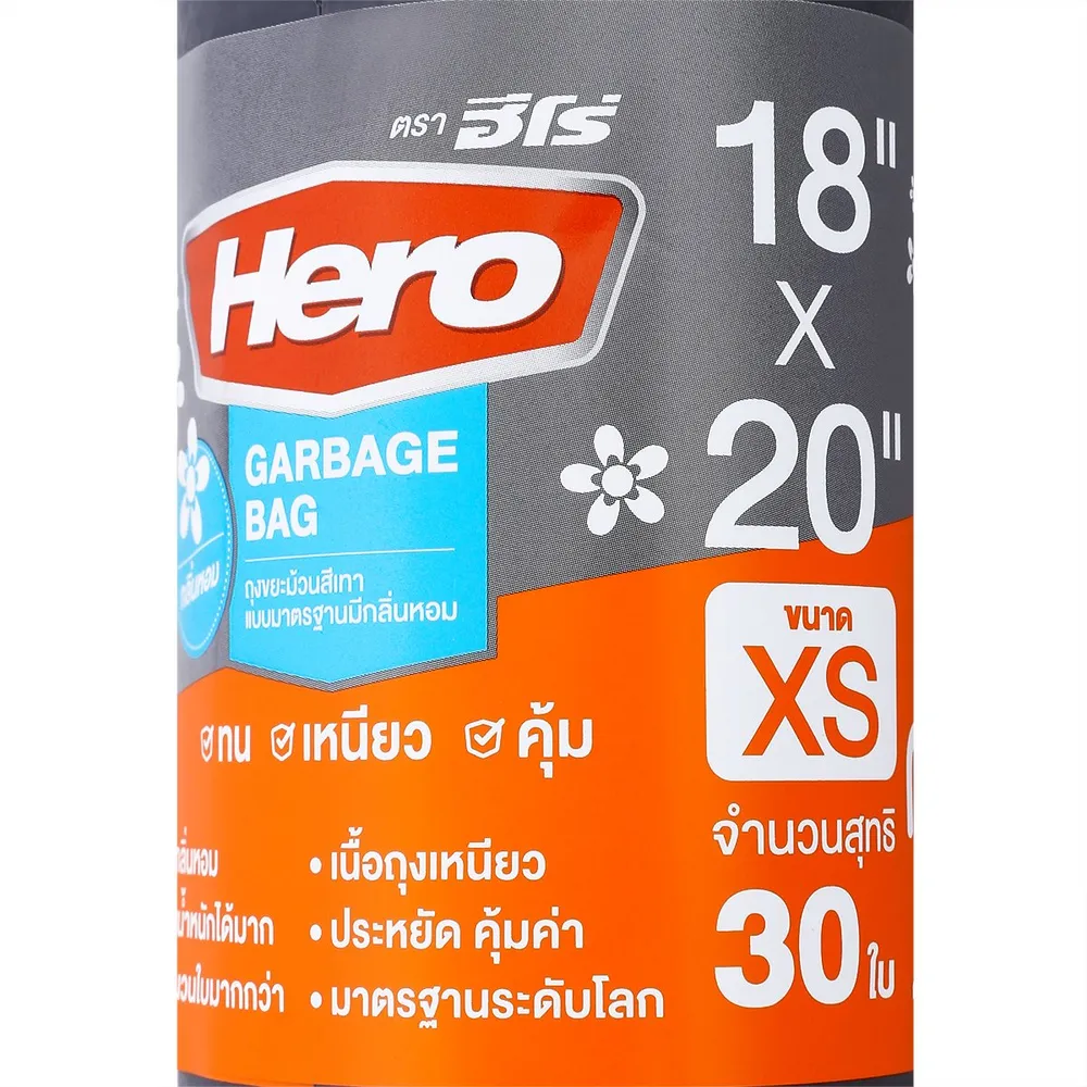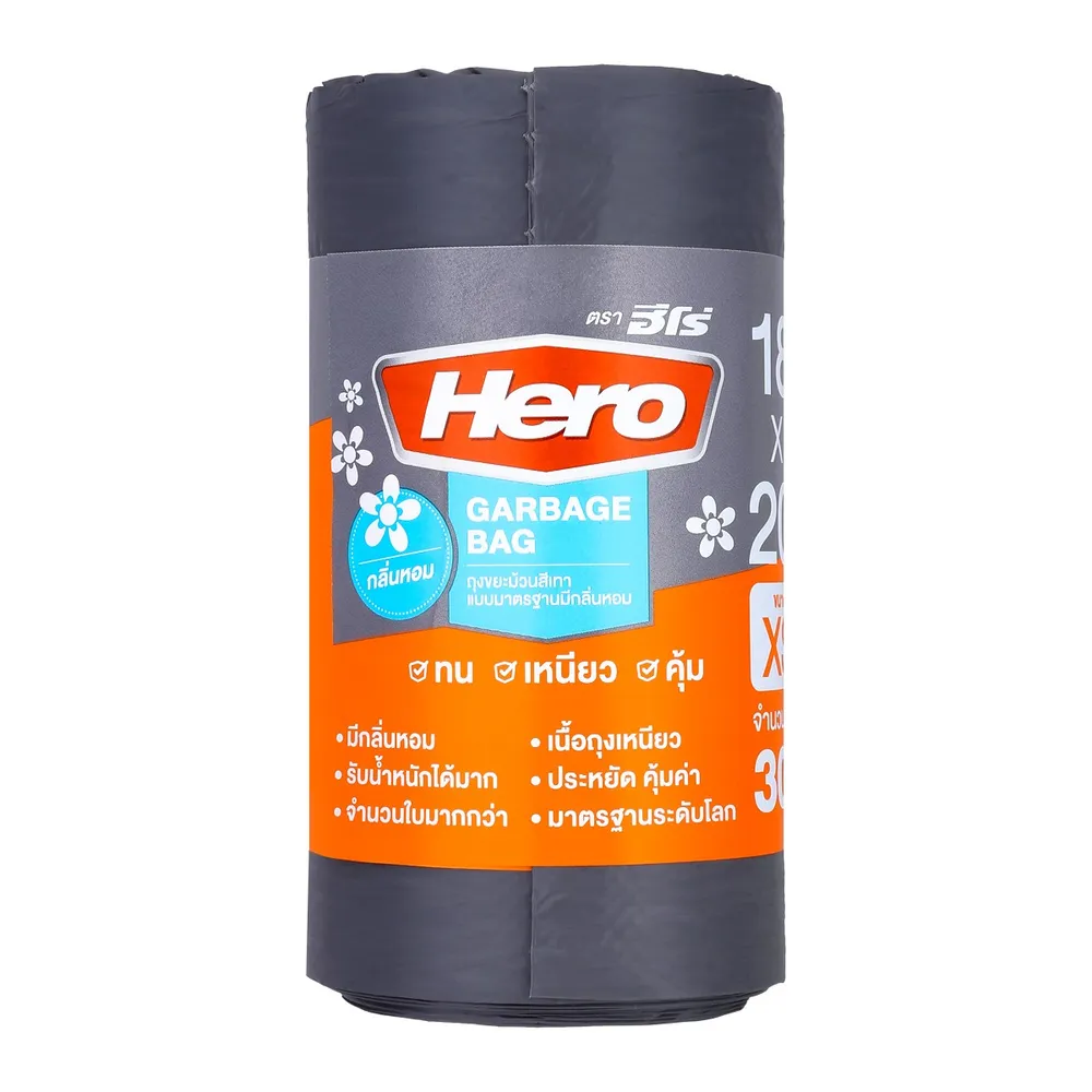 ฮีโร่ ถุงขยะม้วน แบบมาตรฐาน มีกลิ่นหอม สีเทา 18x20 นิ้ว แพ็ค 30 ใบ