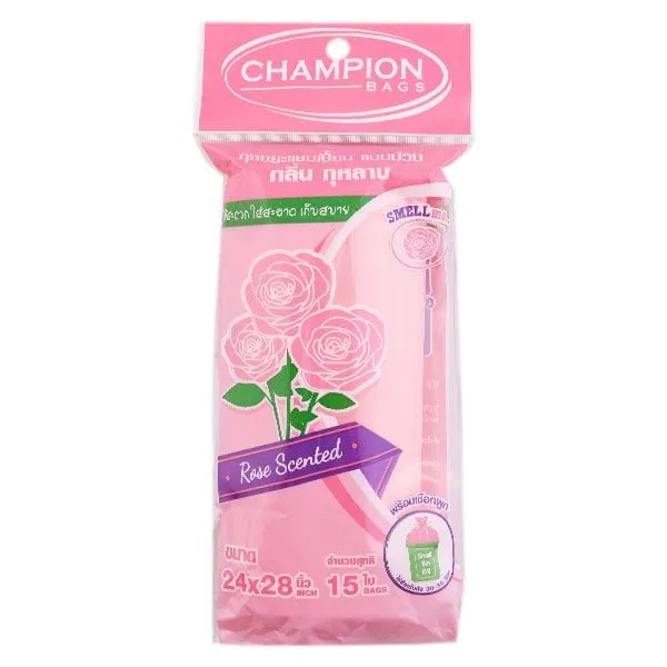แชมเปี้ยน ถุงขยะแบบม้วน กลิ่นกุหลาบ ขนาด 24x28 นิ้ว 15 ใบ
