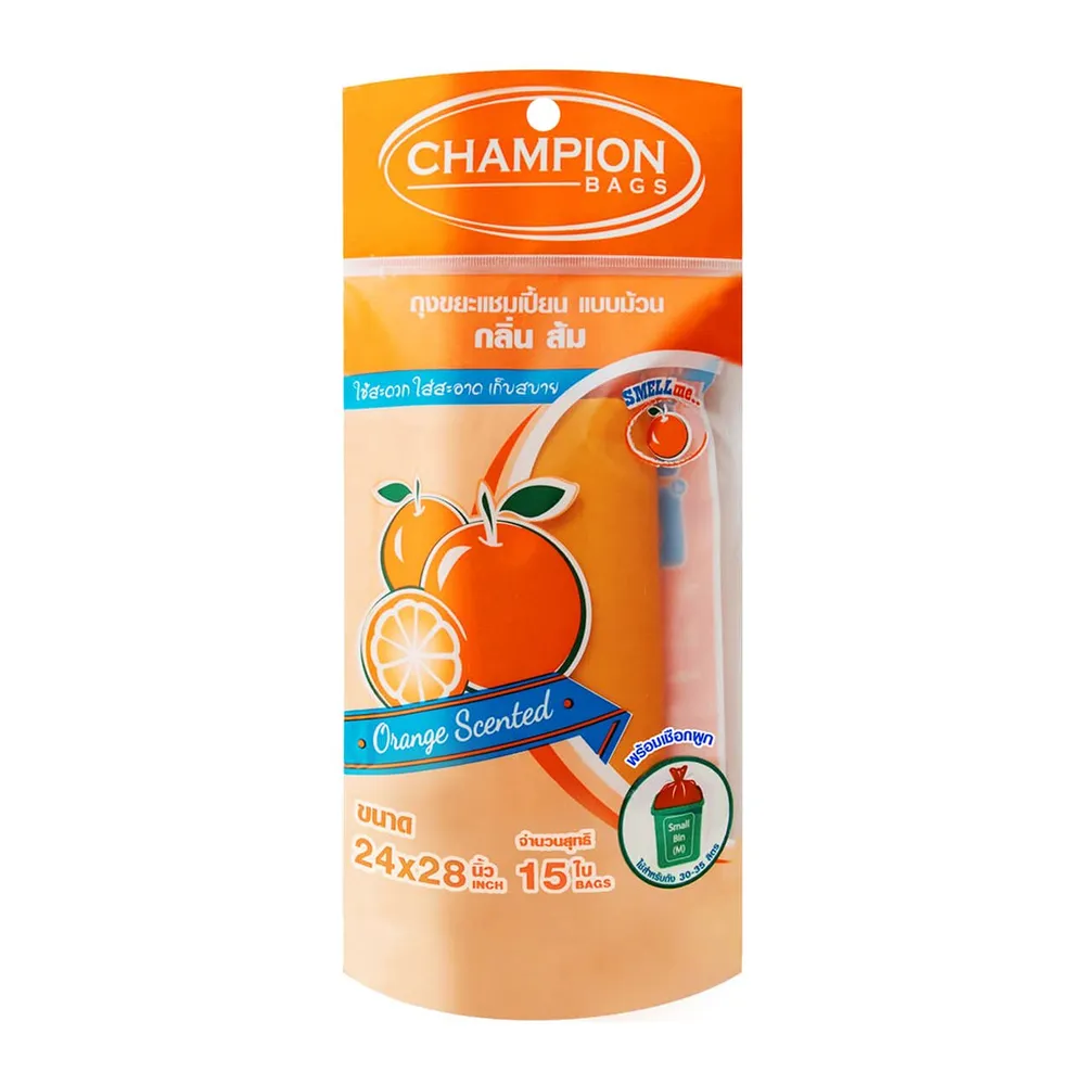 แชมเปี้ยน ถุงขยะ แบบม้วน กลิ่นส้ม ขนาด 24 x 28 นิ้ว 15 ใบ