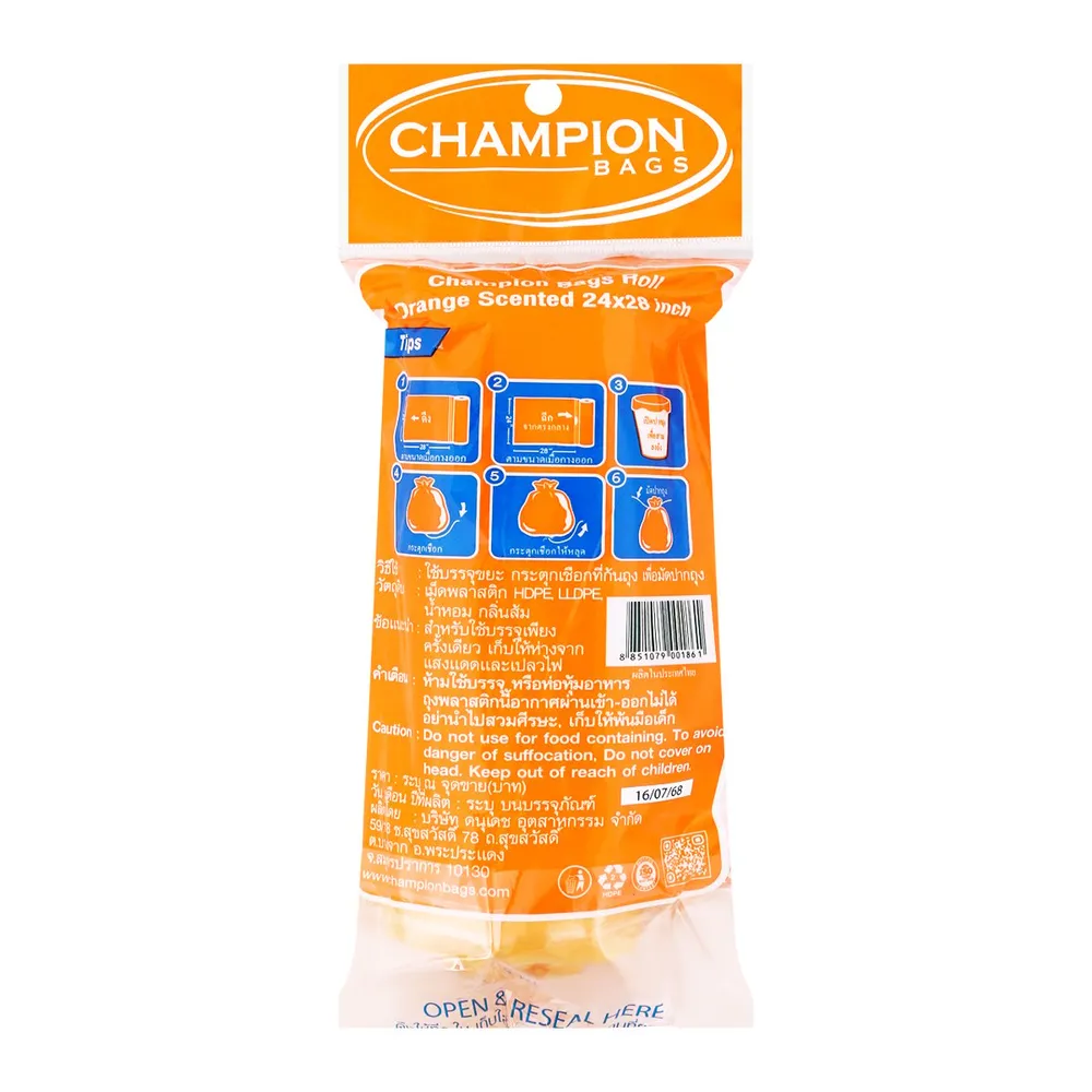<p>แชมเปี้ยน ถุงขยะ แบบม้วน กลิ่นส้ม ขนาด 24 x 28 นิ้ว<br />