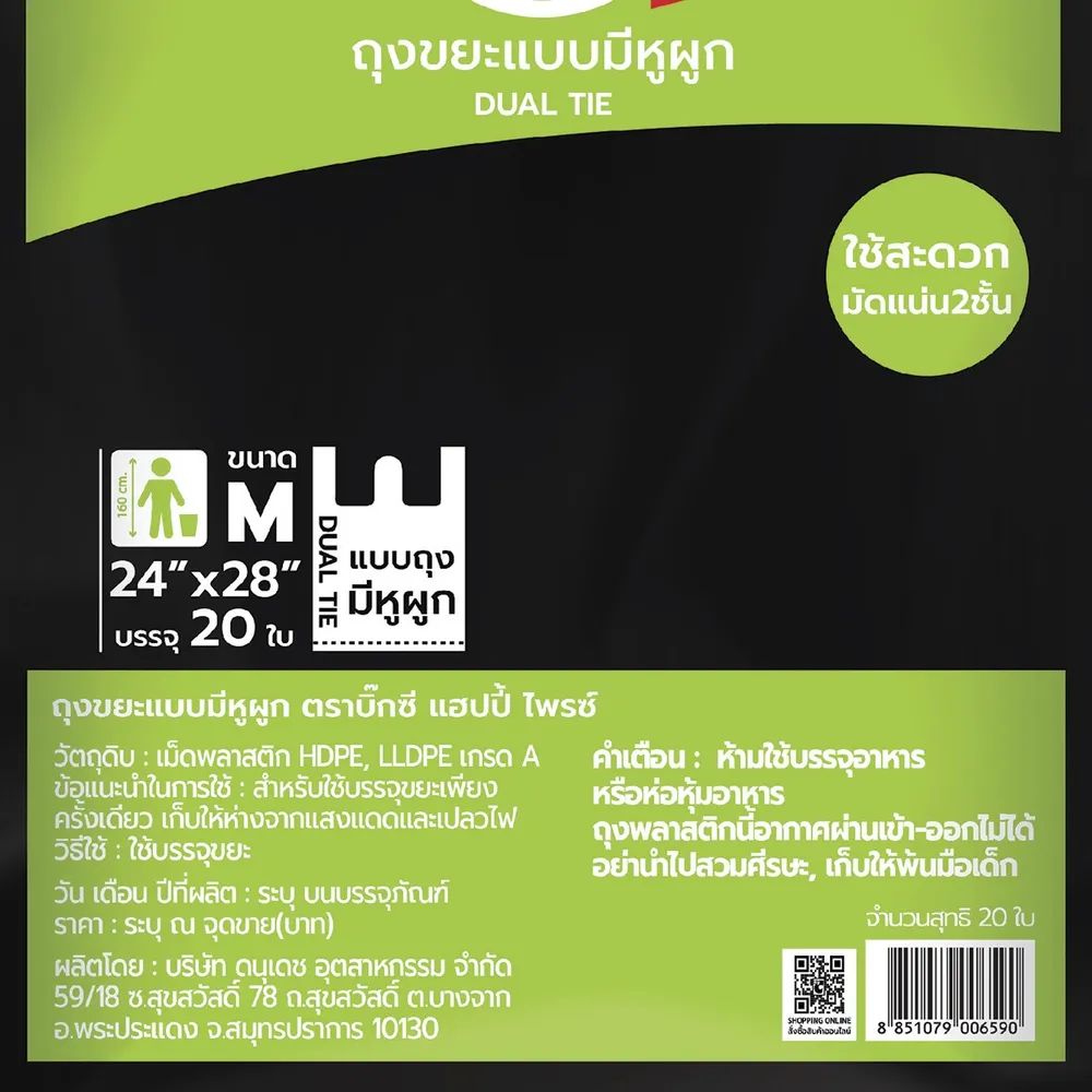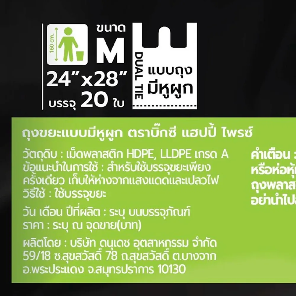 บิ๊กซี แฮปปี้ ไพรซ์ ถุงขยะแบบมีหูผูก ขนาด 24 x 28 นิ้ว แพ็ค 20