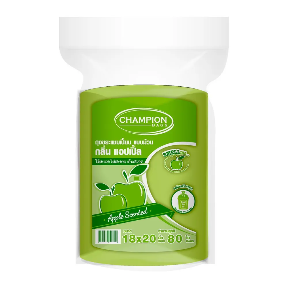 แชมเปี้ยน ถุงขยะแบบม้วน กลิ่นแอปเปิ้ล ขนาด 18X20 นิ้ว แพ็ค 80 ใบ