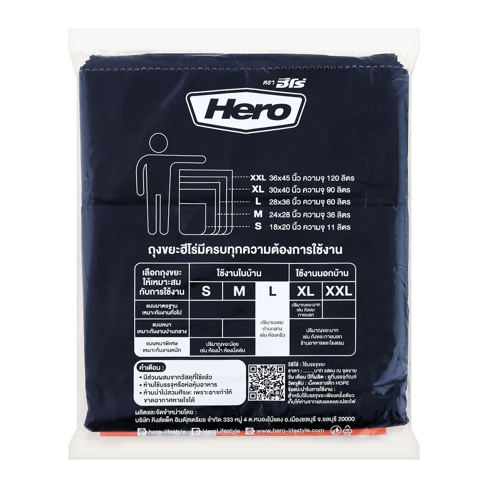 ฮีโร่ ถุงขยะหนา 3 เท่า ขนาด 28 x 36 นิ้ว สีดำ 20 ใบ