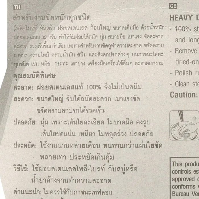<p>โพลี-ไบรท์ ฝอยสเตนเลส<br /><br />ทำความสะอาดเครื่องครัวของคุณได้ง่ายๆ เมื่อมีโพลี-ไบรท์ ฝอยสเตนเลส คุณภาพดี ก้อนใหญ่ไว้ใช้งาน ตัวฝอยมีขนาดเต็มมือทำให้หยิบจับได้ง่าย ขัดสะดวกไม่หลุดมือ มีน้ำหนักเบา ให้สัมผัสที่นุ่ม สบายมือ สามารถขจัดคราบได้สะดวกรวดเร็ว<br /><br />- ฝอยสเตนเลส น้ำหนักเบา คุณภาพดี<br />- ขจัดคราบไหม้ น้ำมัน สนิมได้ดีเยี่ยม<br />- สามารถใช้ได้กับภาชนะหลายประเภท<br />- ทำความสะอาดได้ดีเยี่ยม รวดเร็ว เบาแรง<br /><br />*ภาพประกอบใช้เพื่อการโฆษณาเท่านั้น</p>