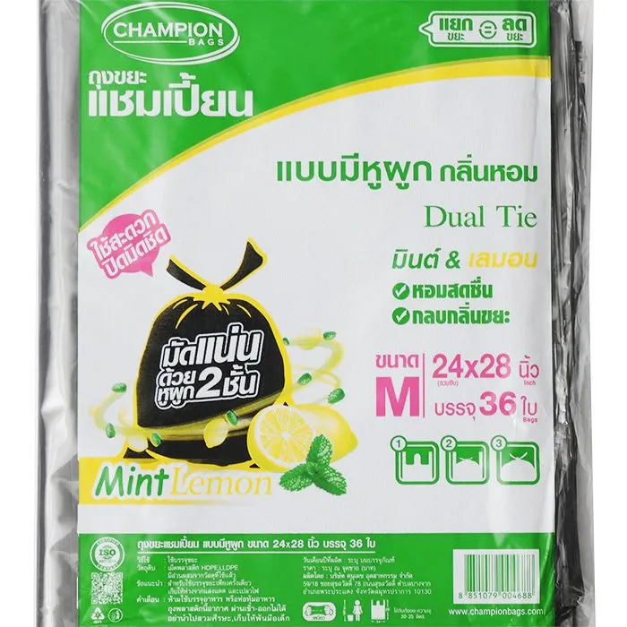 <p>ถุงขยะแชมเปี้ยน แบบหูผูก กลิ่นมินต์ &amp; เลมอน 24x28 นิ้ว<br />