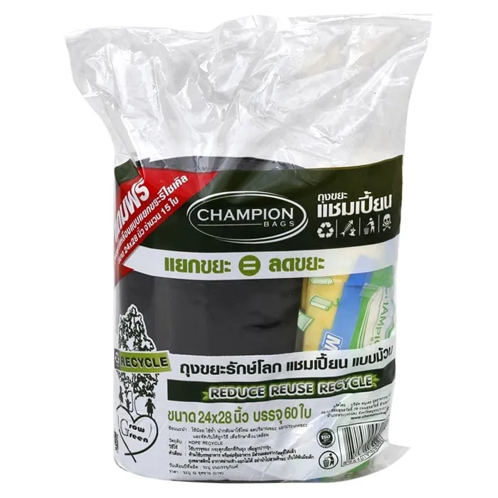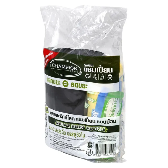 แชมเปี้ยน ถุงขยะแบบม้วน รักษ์โลก ขนาด 24x28 นิ้ว แพ็ค 60 ใบ