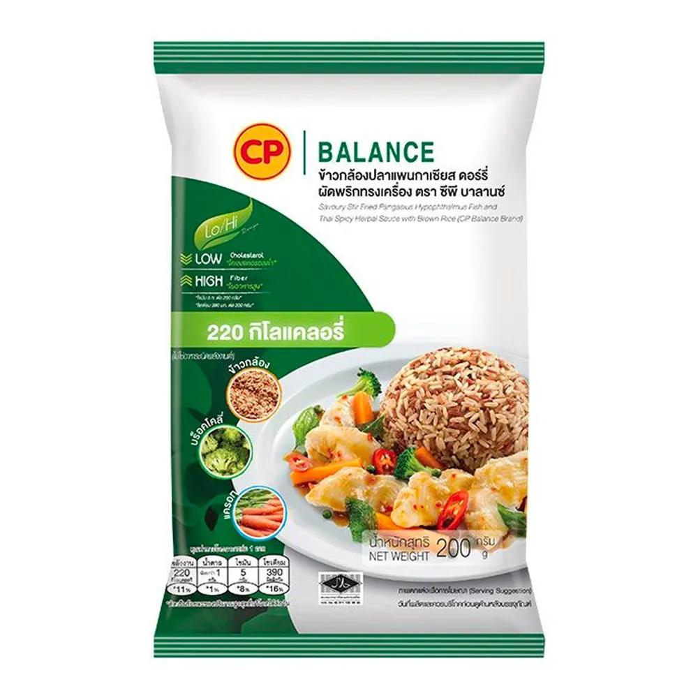 ซีพี ข้าวกล้องปลาแพนกาเซียสดอร์รี่ผัดพริกทรงเครื่อง 200 ก.