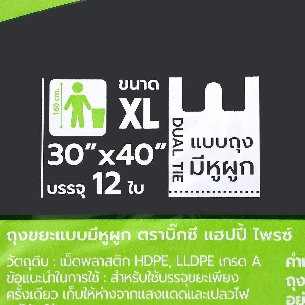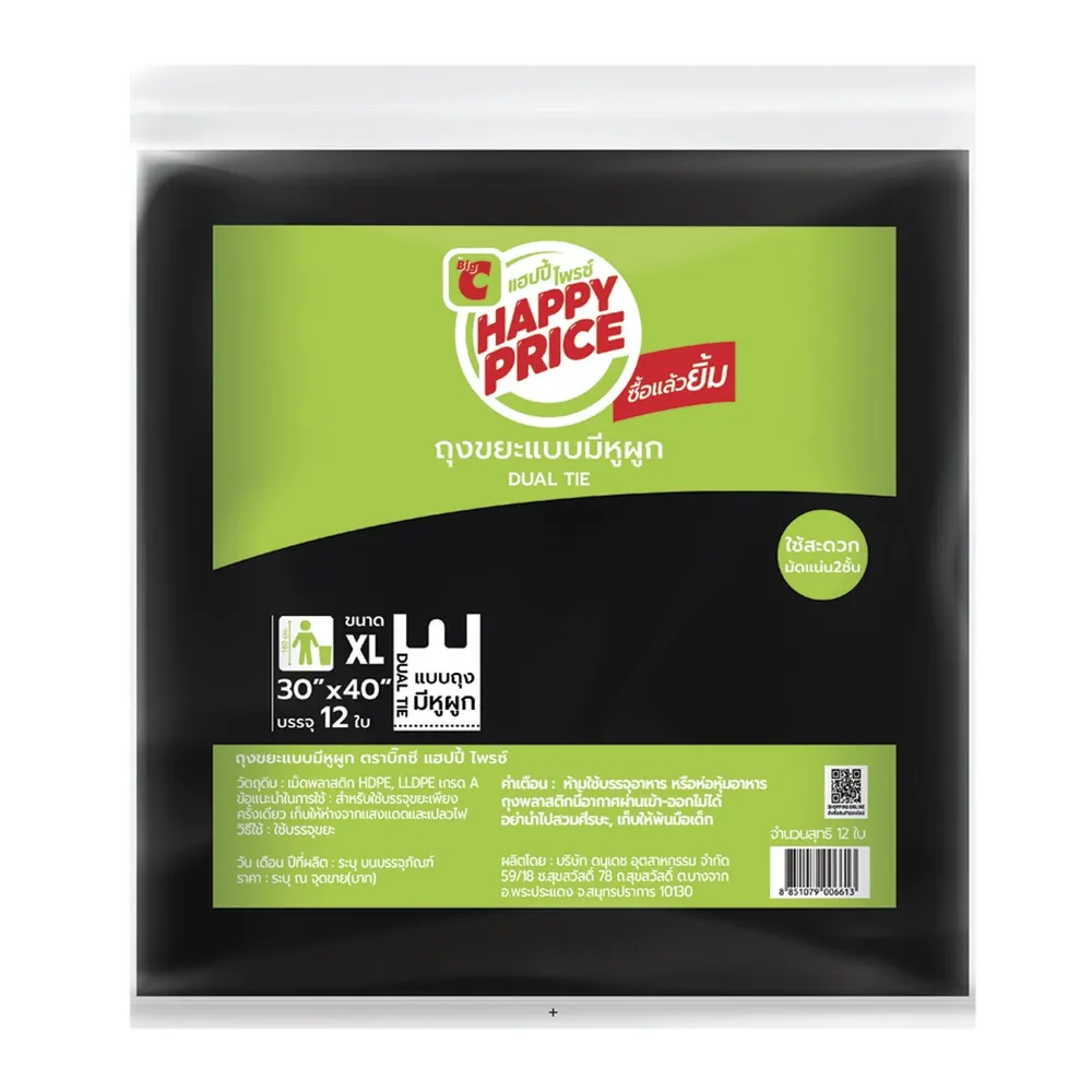 บิ๊กซี แฮปปี้ ไพรซ์ ถุงขยะแบบมีหูผูก ขนาด 30 x 40 นิ้ว แพ็ค 12