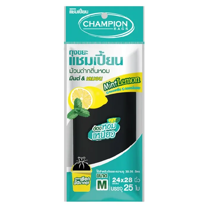 แชมเปี้ยน ถุงขยะสีดำ แบบม้วน กลิ่นมินต์&เลมอน 24x28 นิ้ว แพ็ค 25 ใบ