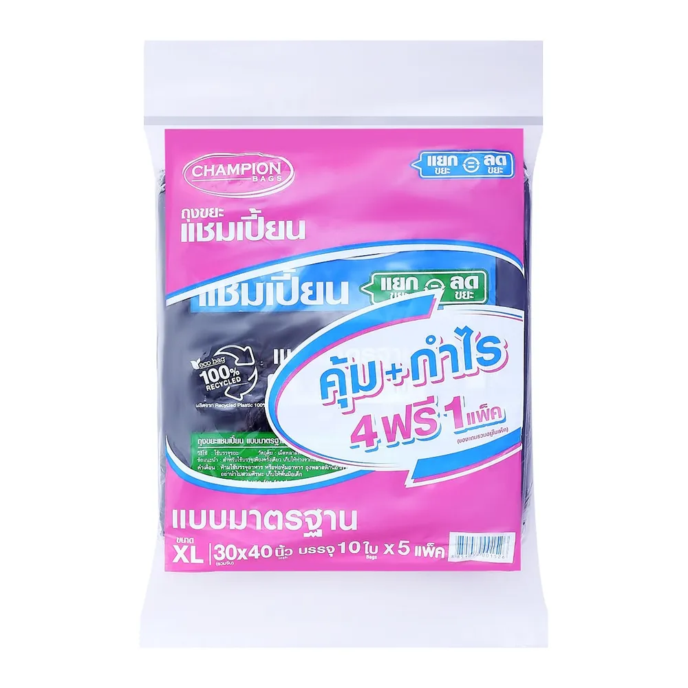 <p>แชมเปี้ยน ถุงขยะ ขนาด 30 x 40 นิ้ว 10 ใบ x 5 แพ็ค<br />