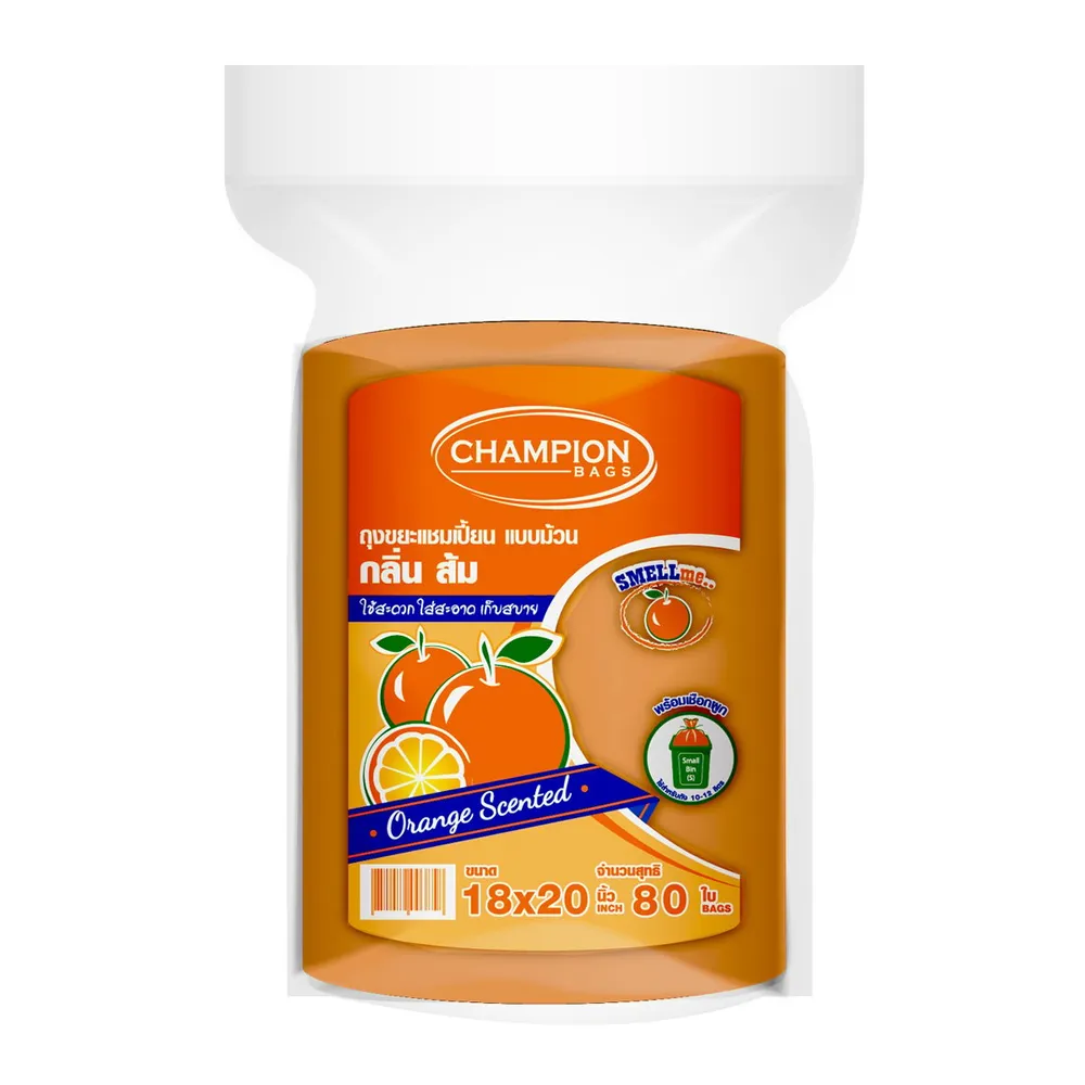 แชมเปี้ยน ถุงขยะแบบม้วน กลิ่นส้ม ขนาด 18X20 นิ้ว แพ็ค 80 ใบ