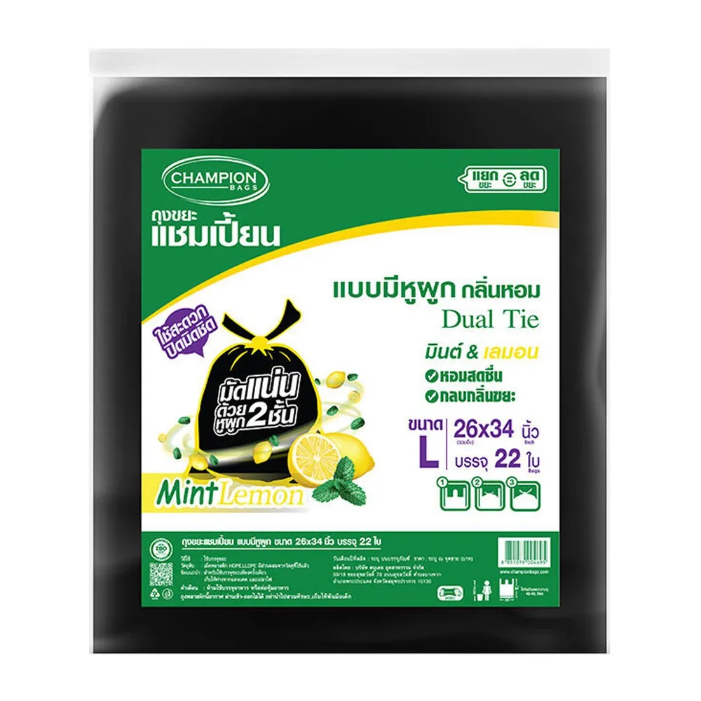 แชมเปี้ยน ถุงขยะแบบหูผูก กลิ่นมินต์ & เลมอน 26x34 นิ้ว แพ็ค 22 ใบ